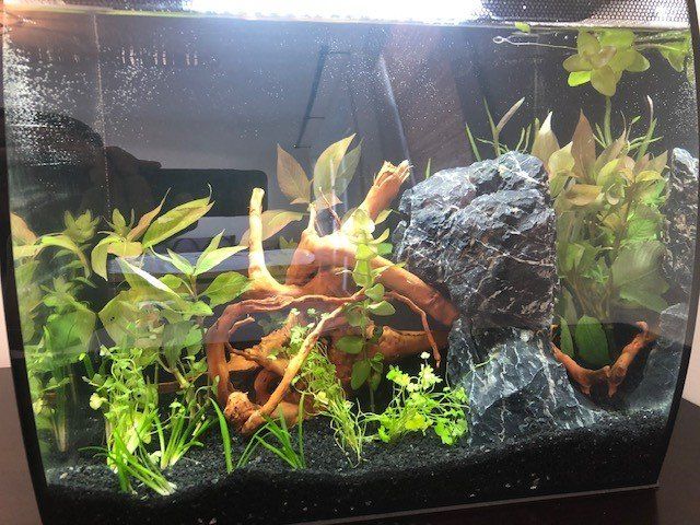 I am new to the hobby and just set up a Fluval Flex 9 last night. Planted tank with fluorite black substrate, some spiderwood and blue seriyu stone (pic below). Added water conditioner to remove the chlorine from tap water as well and have just been letting it run the past 24hrs. I have a few questions and if anyone can help it would be much appreciated:
