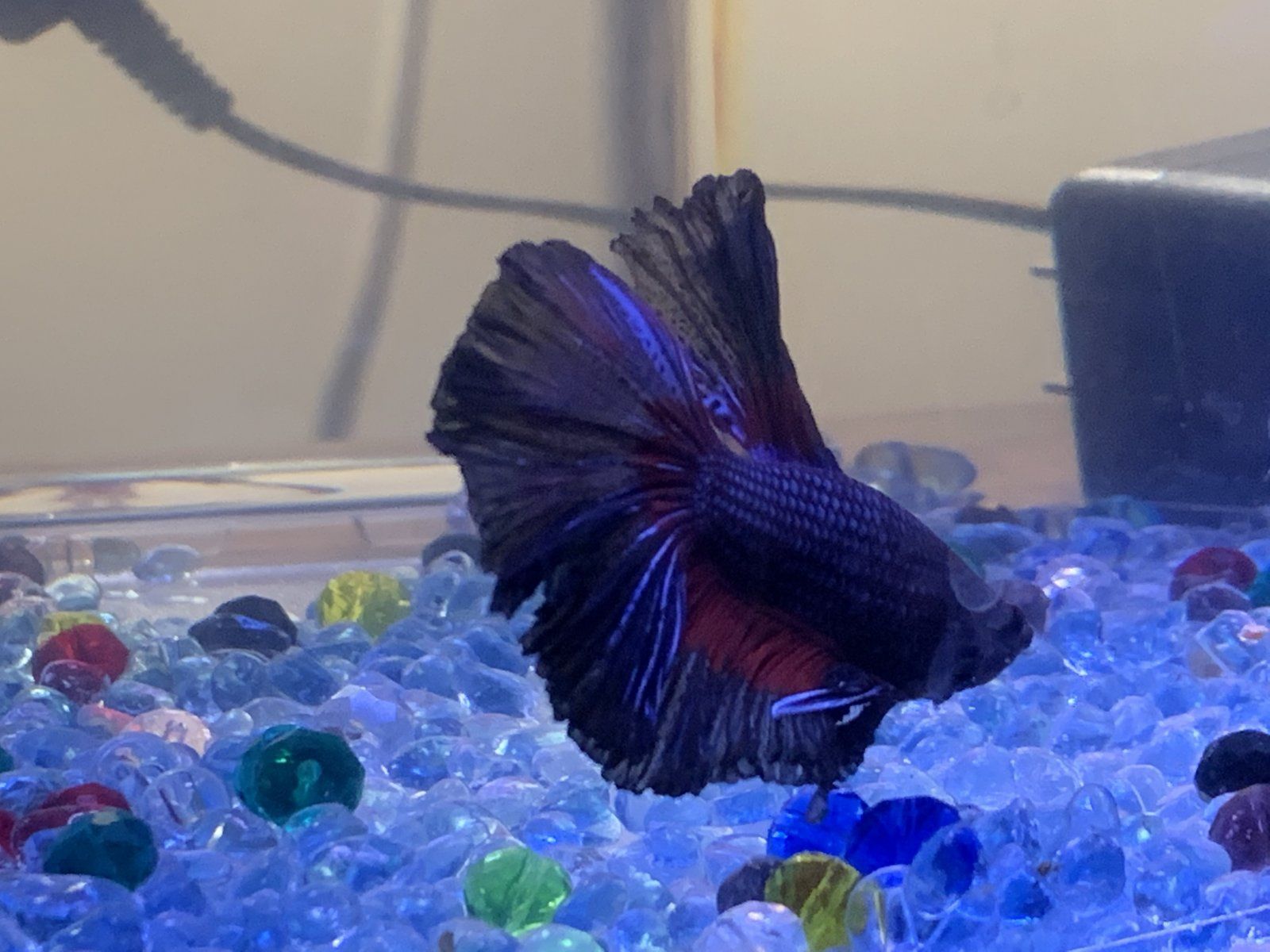 Large daily water changes (The more the better, but I would start with 40% per day) every day for a week, or until things improve, will help her fins heal.