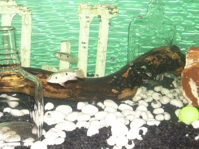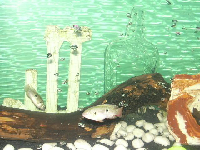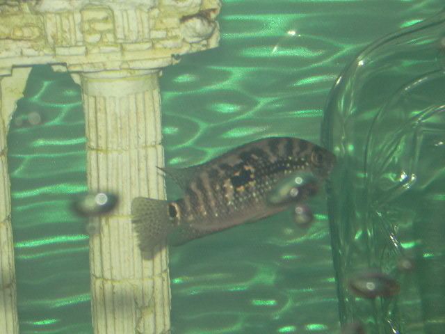 The only strange thing I've noticed is that my Jag is getting brutilized by one of my jacks, and now there's going to be a real test of will. My Cons are trying to get freaky. If they have fry I'm going to take them to another tank this time.