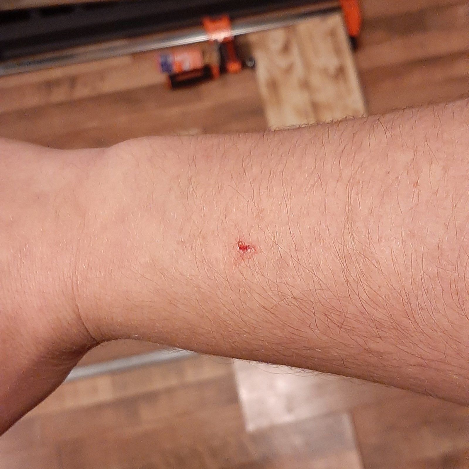 Have things really gotten that bad that this is a cause for concern? It didn't even bleed enough for a drop to form. Until she said something, I was completely unaware of my "injury".