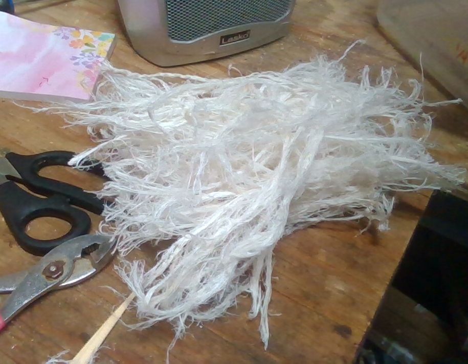 After a whoooooole bunch of pounding with a hammer, pulling, separating, and cleaning, it comes apart into individual fibers like this: