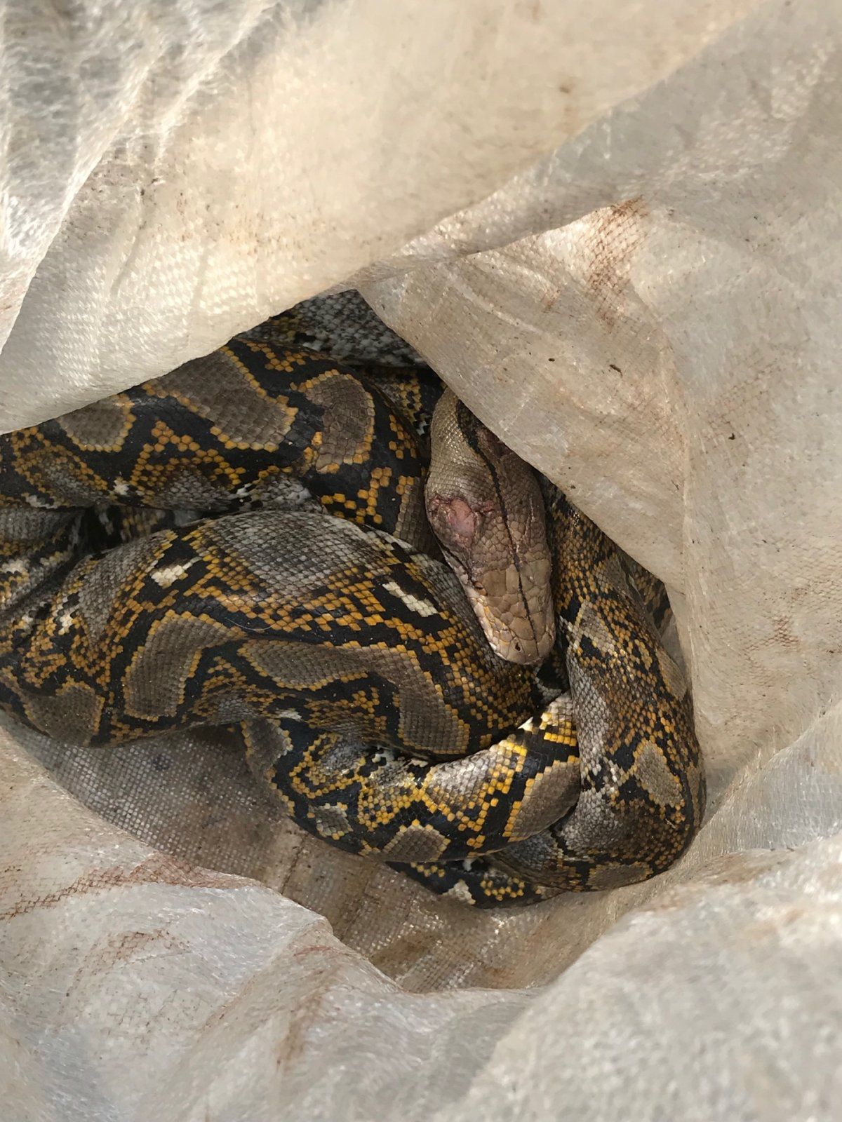 So glad I dont live anywhere, and never have lived anywhere with snakes like thatI opened my closet this morning and this thing come out of it so I just hit it with the Aragorn sword I have in my room, no he’s hiding in a plastic bag, I cant believe that there’s over 12 foot long python in my closet.