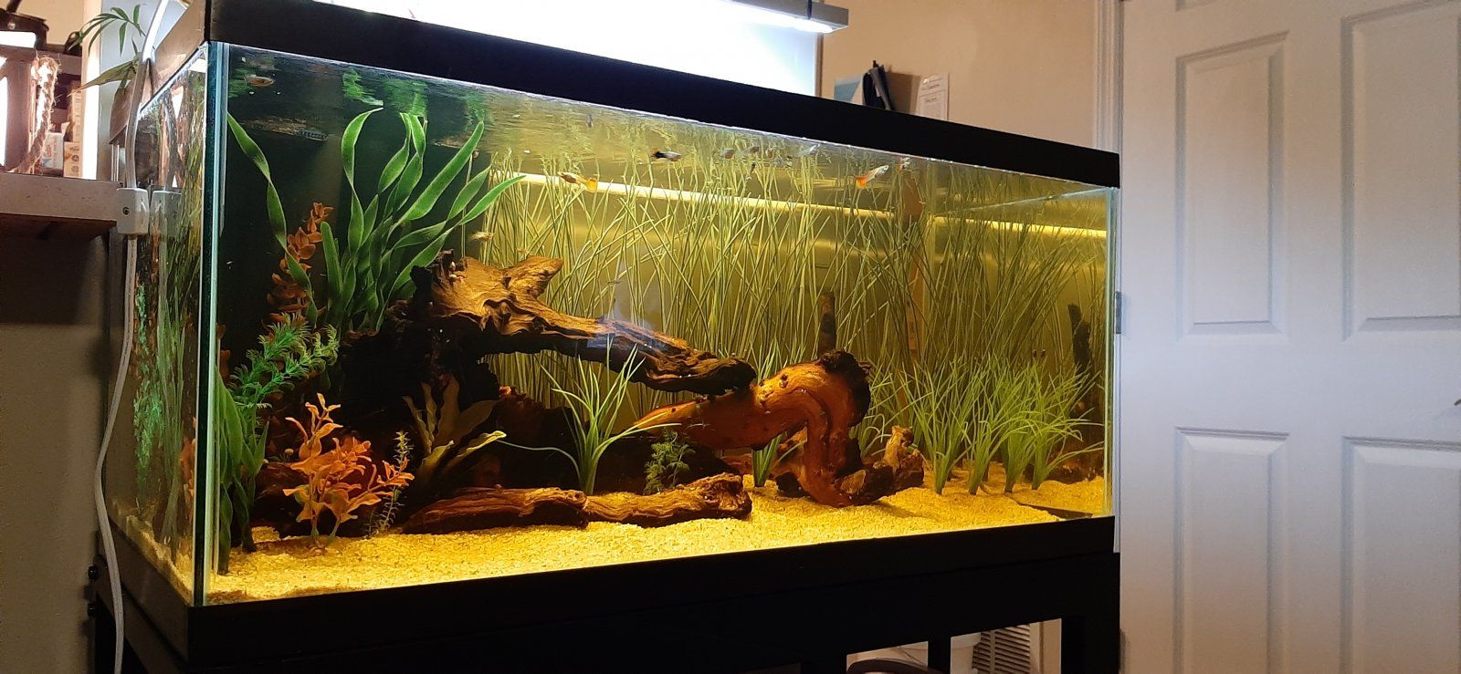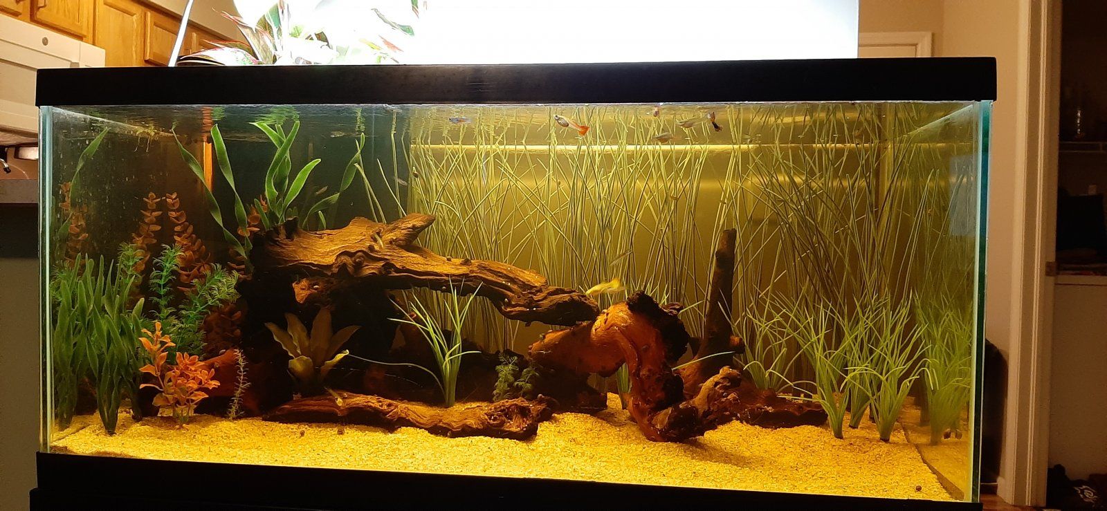 Looks really good. Love the overall scape.I did a re-scape this afternoon of the guppy tank. It was really bothering me how cluttered and incohesive it was. It's not perfect, but it's better than it was.