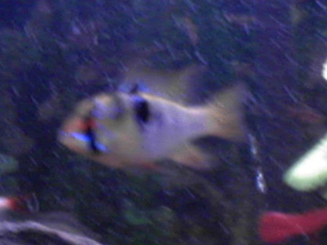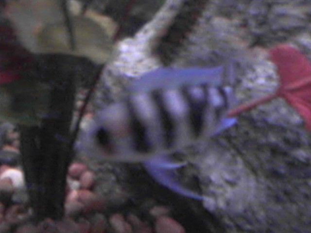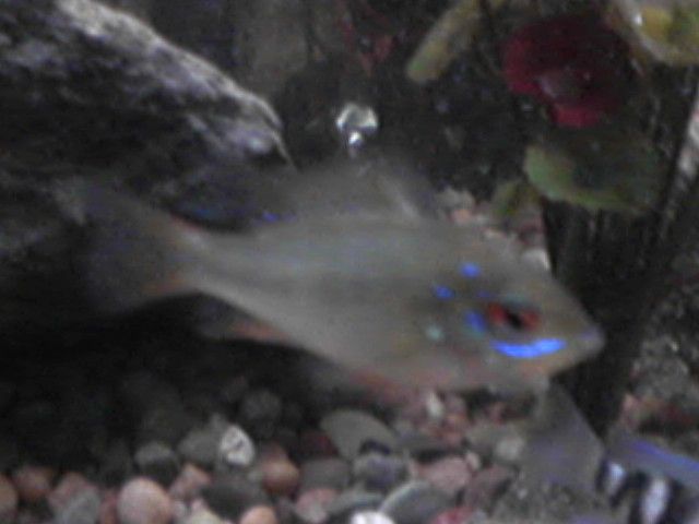Sorry for the blurs, the only working camera in the household is my phone lol. Anyway, here is what i suspect to be a female ram. Best pic I could get...You can kinda see how the rays don't extend over the body as the rays of the male has. Note: the male is the more colored one and the female is the drab one for some reason.