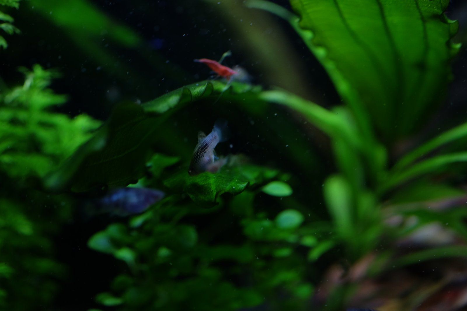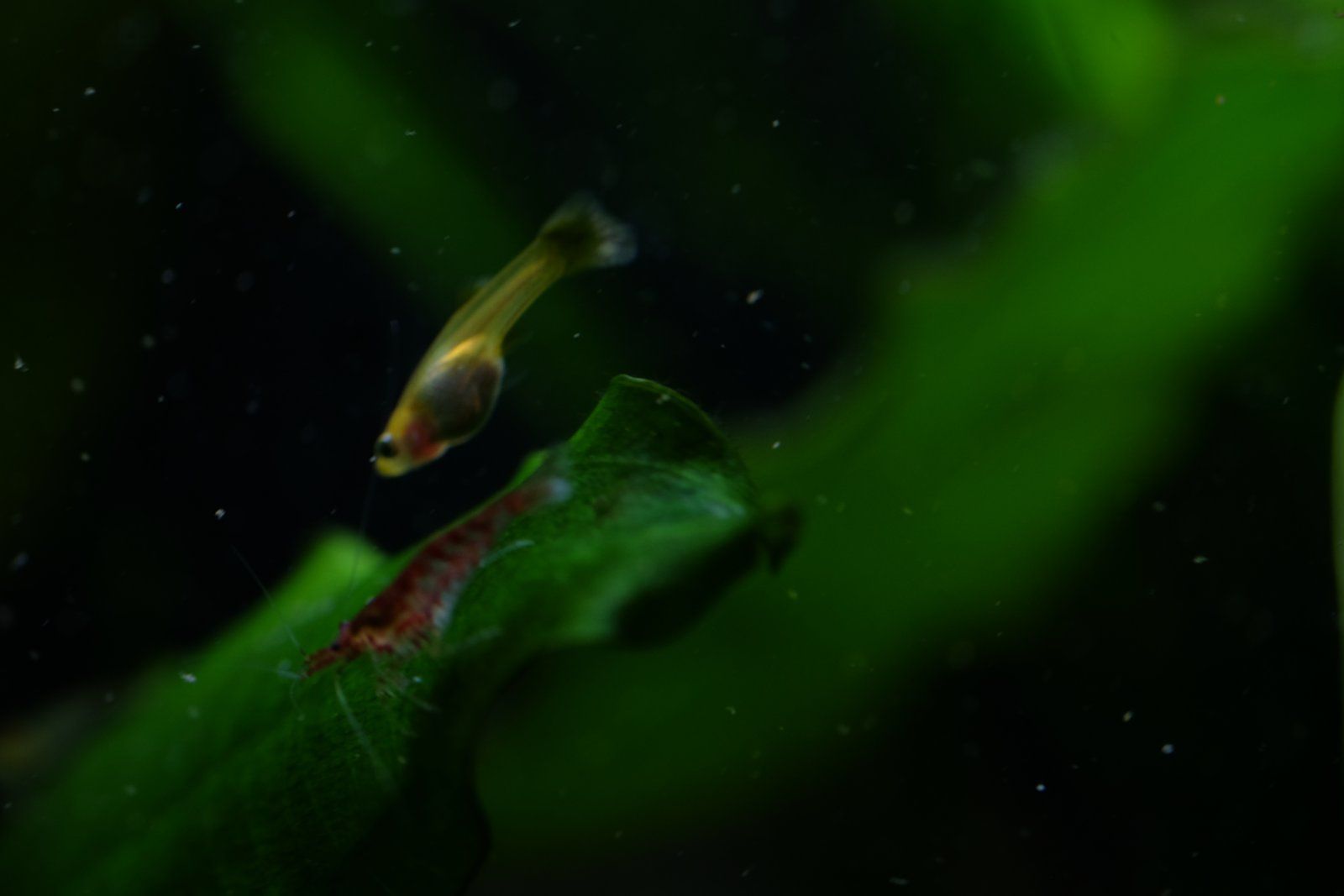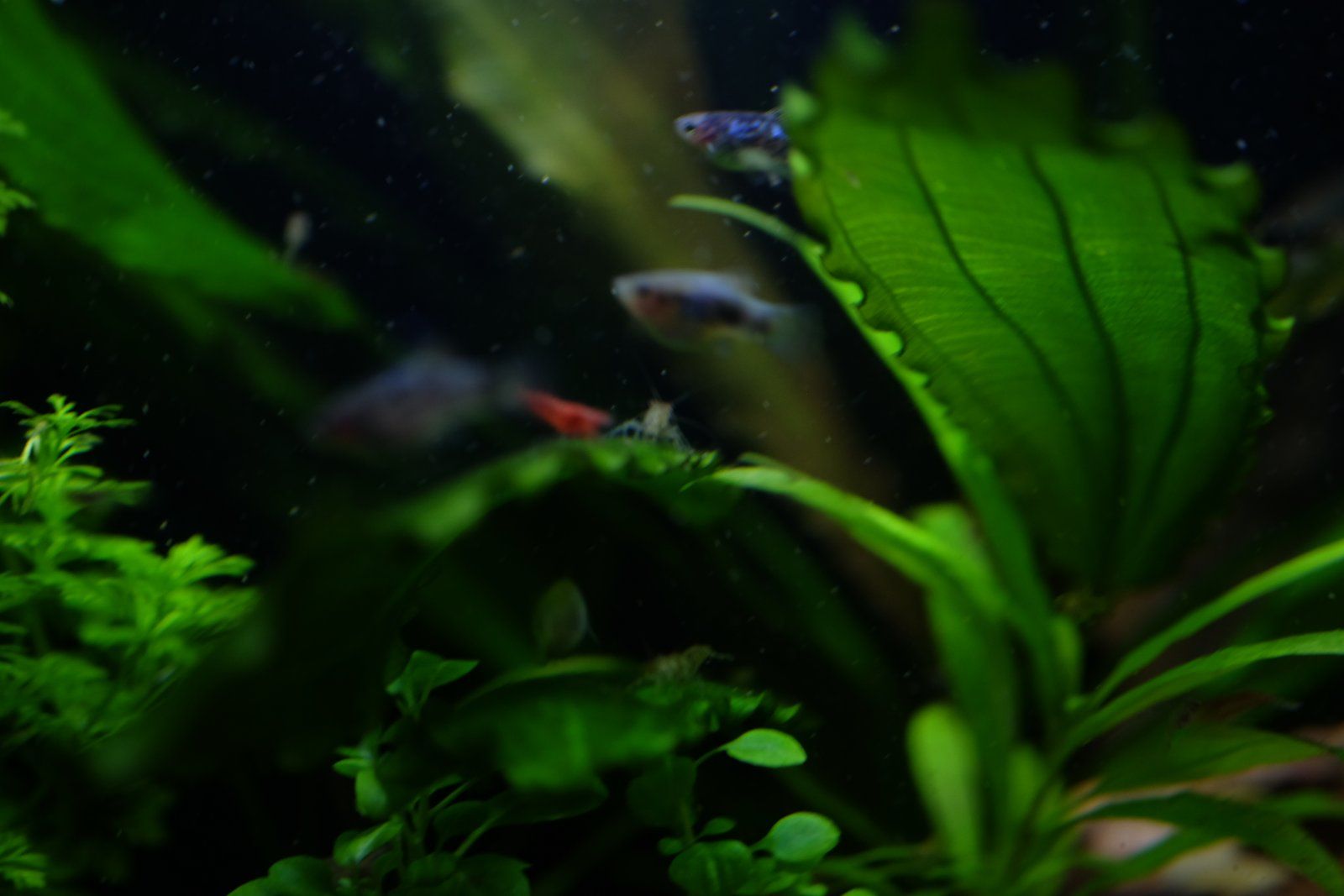 Was trying to get a photo of the black shrimp next to plants and some of the fish, to show it's not the lighting or camera, that they truly produced black shrimp!