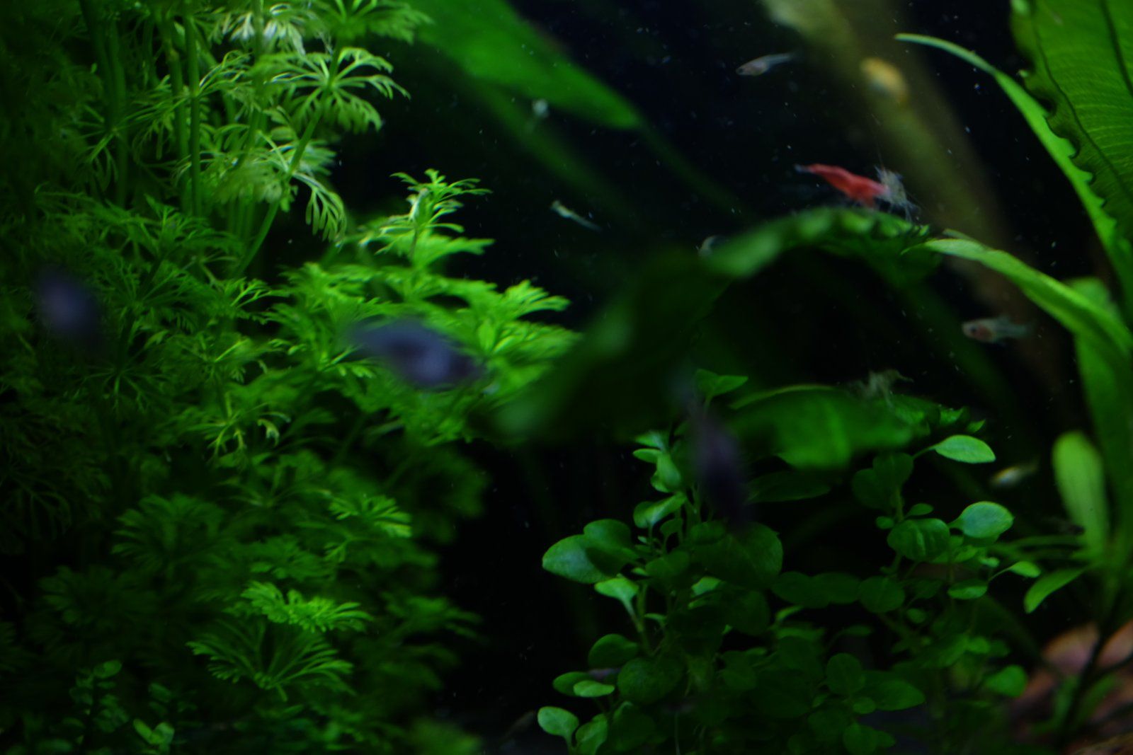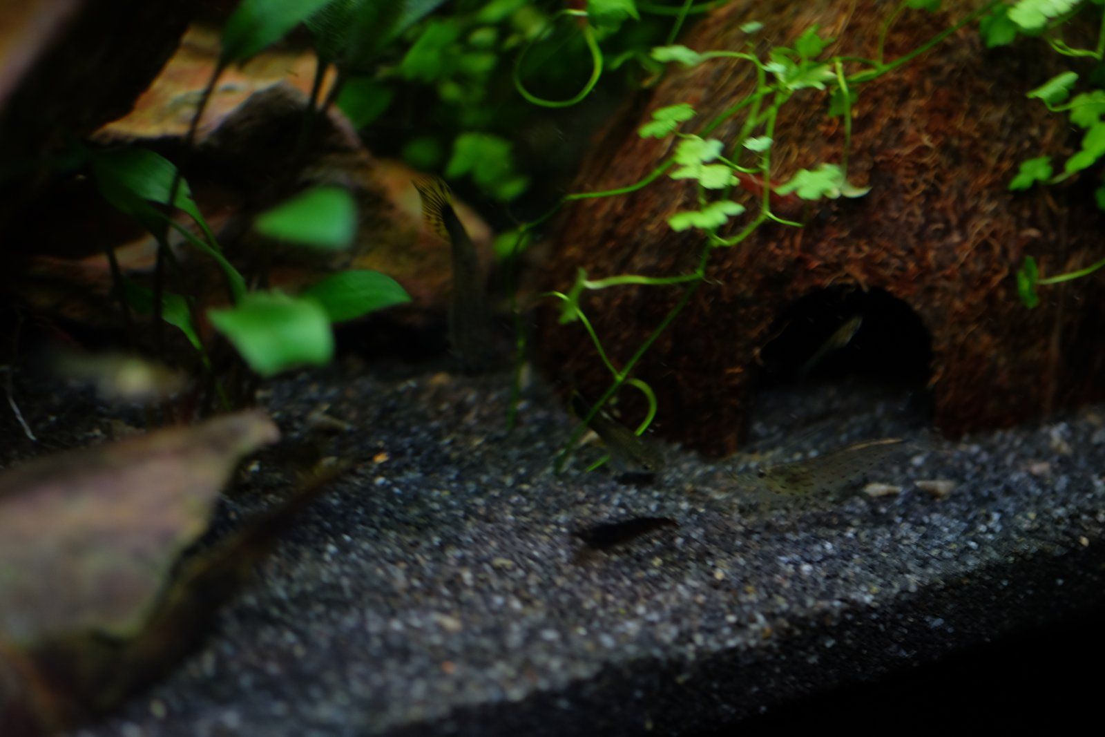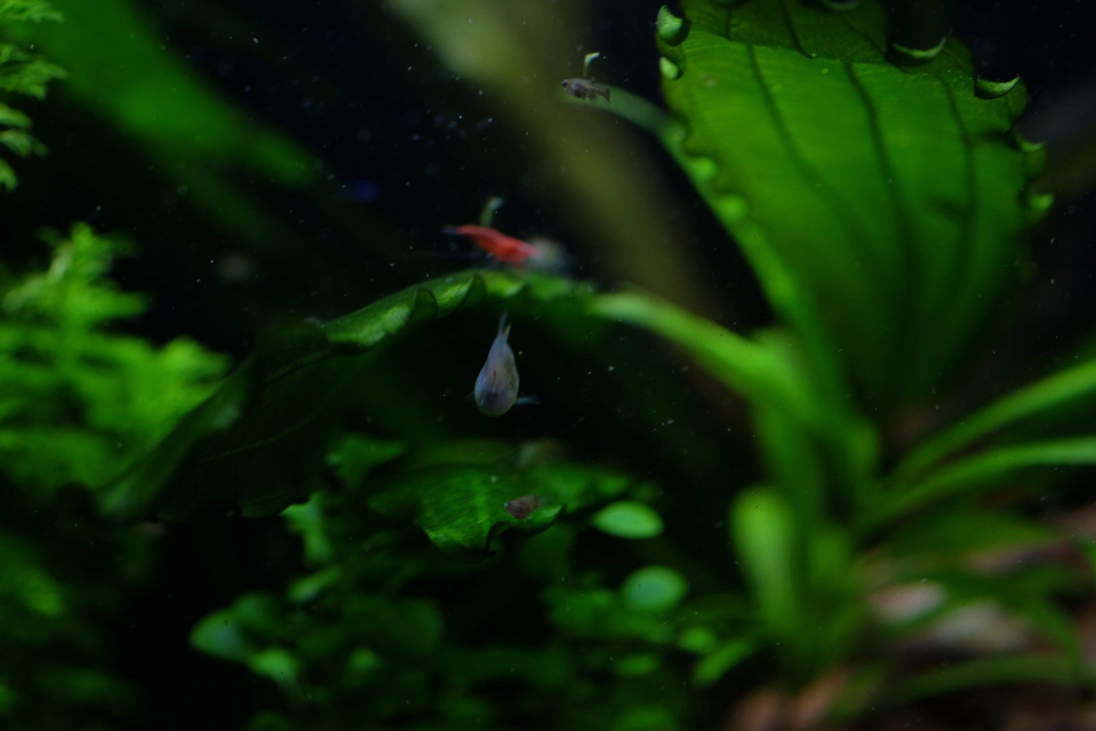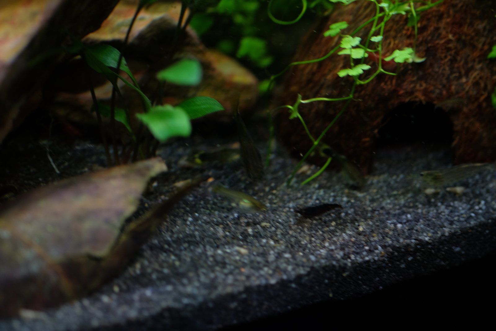 Was trying to get a photo of the black shrimp next to plants and some of the fish, to show it's not the lighting or camera, that they truly produced black shrimp!