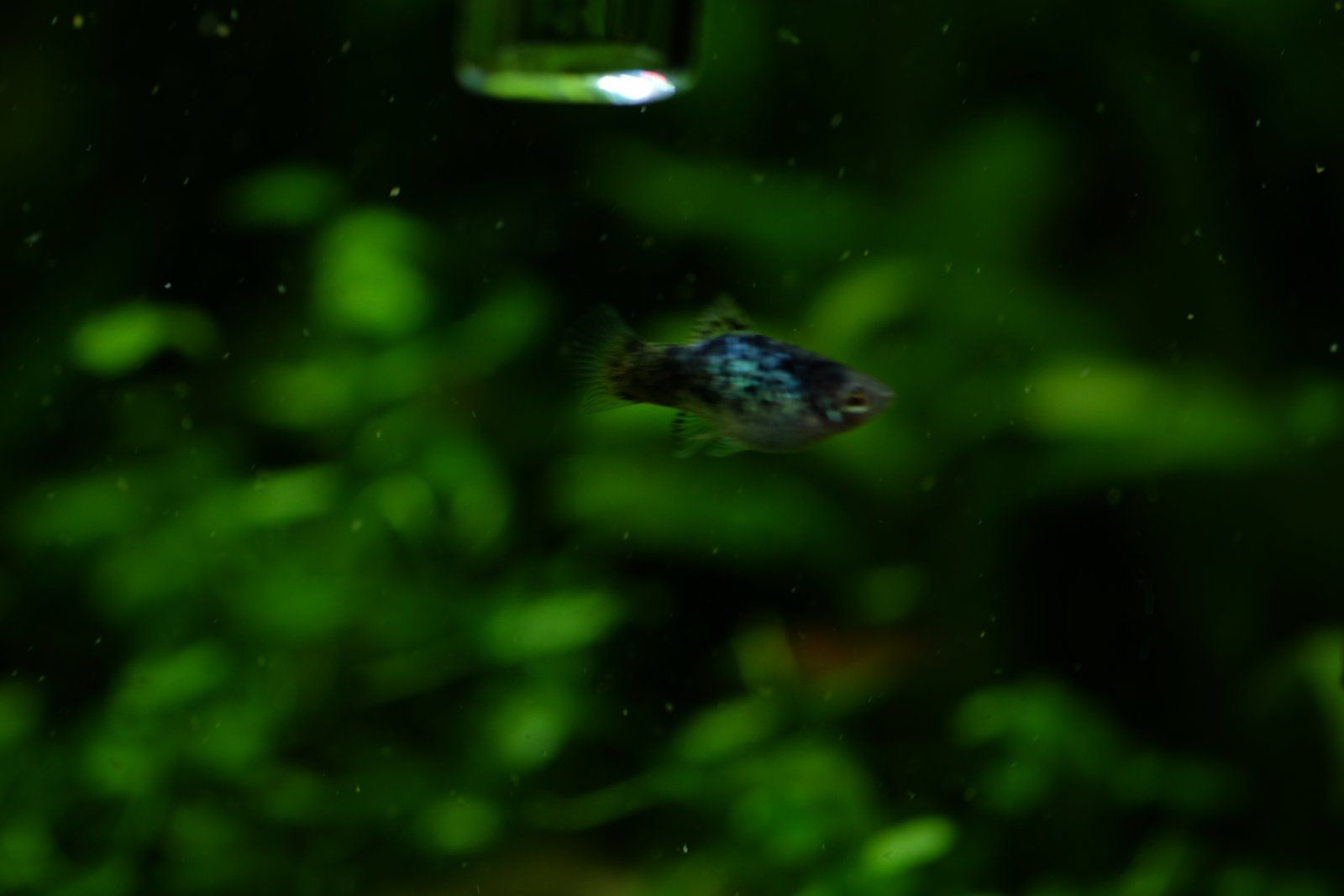 Some of the baby fish! I'm growing out a few blue platy youngsters in here, I grabbed them from the 57 gallon while they were tiny, 'cos I want to keep some blue platy lines going in there, and didn't want them to be mated by the snta or red mickey mouse platies in there.