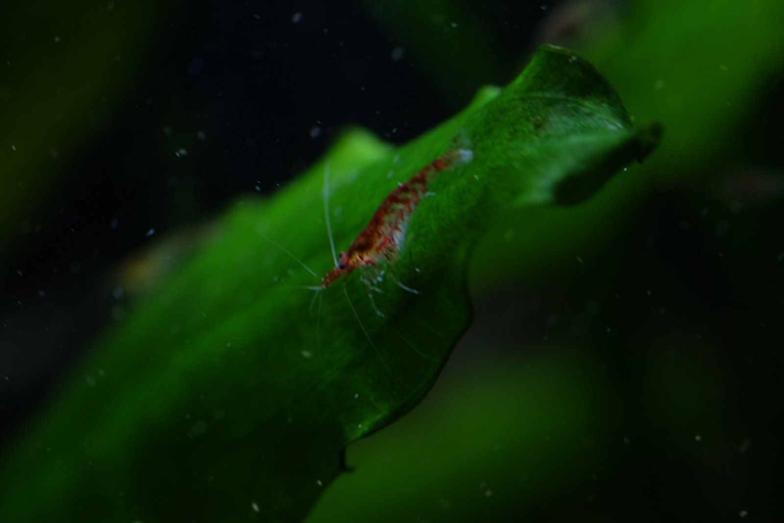 Shrimp population has recovered really well in here, so despite the panic and expense at the beginning of this thread, it was worth it! They've produced some really interesting colours. This one below truly is black. It's not the lighting, there are a couple of black shrimp in here! I only added the original reds, plus a few blue dreams (labelled as blue dream in the store anyway, who knows) and a few labelled as blue diamond. Most of the original blues didn't make it, but I saw one blue female who was berried, and must have produced the blue babies I've seen!