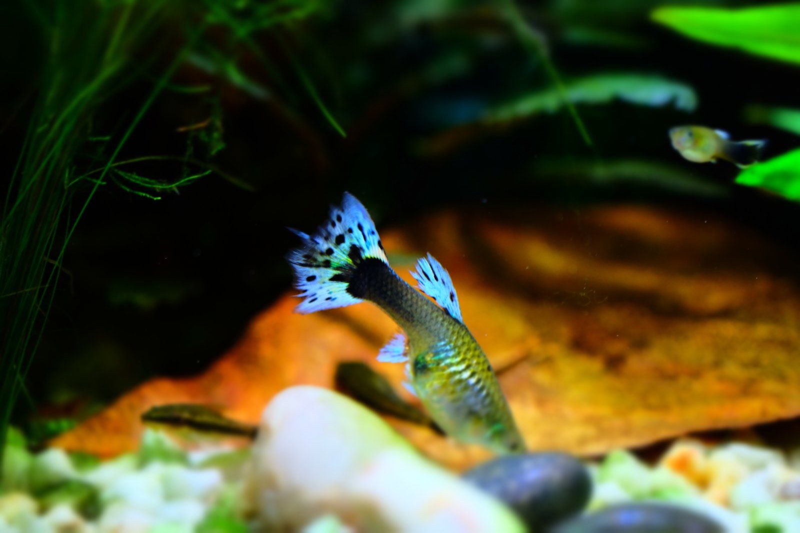 Ah brilliant, thank you! Swallow finned definitely sounds better than "ragged", lol. She's the only one I've bred and kept that has this shape to her fins, most of them have been plain old fan and delta tails.There are guppies that are bred with ragged fins (mainly focussed on the caudal). These are called "swallow guppies". Here are some examples.