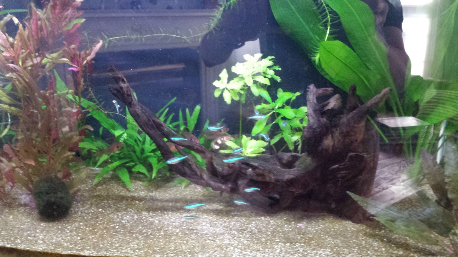 Here is an early picture of my tank before I abandoned it. The picture isn't great, but will give you an idea of what it looked like. If I remember correctly at this point I had already added Otos, Red Phantoms and Green Neons, but the Cories and Endlers were yet to come: