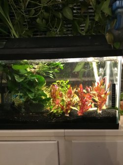 So happy to hear that! I bought exactly the same plants last week, came in the mail 3 days ago. Joined a planted tank forum. Those guys said red plants will melt without intense lighting & CO2 injection. I looked at the CO2 & it seems so complicated. I did not understand their ways of measuring light intensity either. Some use a PAR meter that starts at $500 at this one place. I’m just not all that into red plants if I have to go high tech. But if mine grows like yours , I‘ll be content enoughIt is definitely not so. I don't have CO2. When I first planted that red plant I wasn't even adding anything fancy in terms of nutrients, just Flourish (and my substrate had some laterite). I didn't even have a particularly good light. I was very surprised the plant did so well in my tank (and it did quite well!).