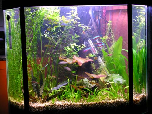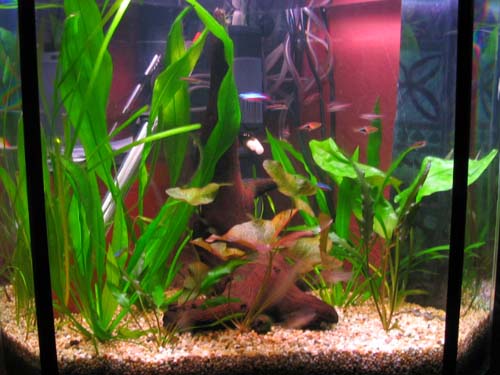 It's going to be nice when the sagitteria fills in! Try some plants attached to the driftwood (moss, ferns, anubias) to fill in the picture. I'd get a background too. The tank looks like it's filling in nicely.