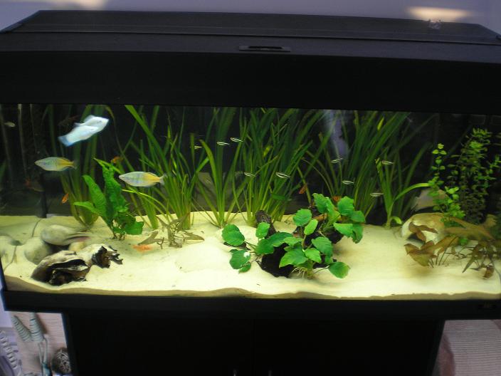 i see u have 2 boesemani rainbows i dont know if the true colours have come out yet but its is well worth it if you can get them to come out but nice looking tank