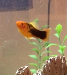Also, they have taken the attention of my aggressive guppy off of the injured one, but I'm not sure the injured one will recover as he is missing a large portion of his tail. The aggressive guppy is still a puzzle to me and he keeps nipping at the platies even though they are bigger than he is, but I don't think he will harm them much.