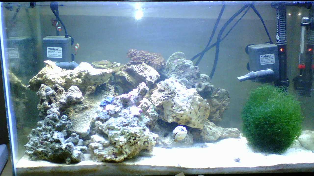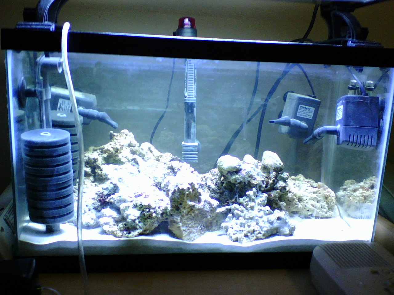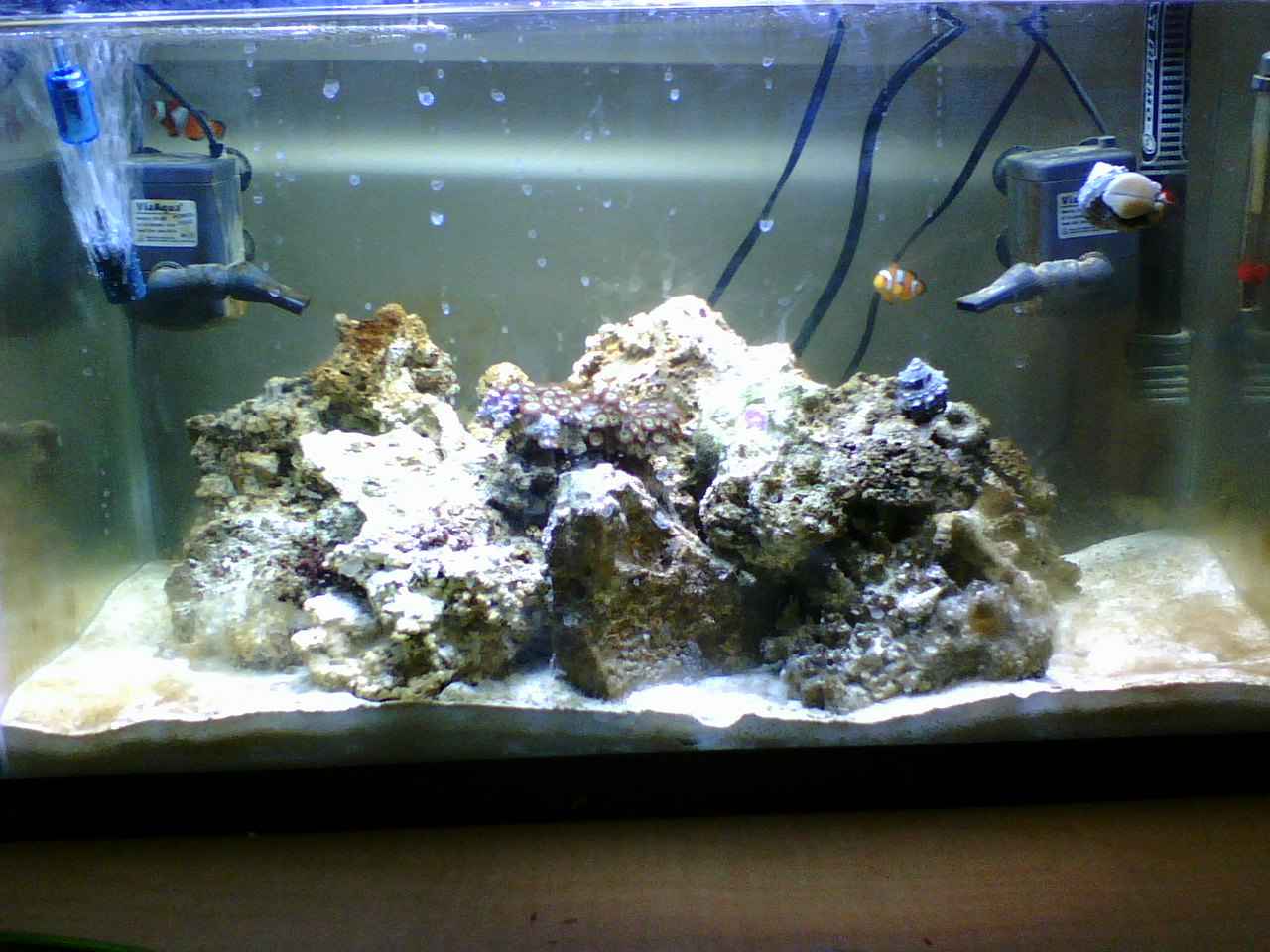 PRW1988 Fish Gatherer Joined Mar 27, 2007 Messages 2,066 Reaction score 0 Location Canada Dec 15, 2007 #9 Looking good, but you don't really need an airstone for saltwater, infact IME it disrupts the fish in the system. You never answered with a yes or no? Reef (with corals) or just FwLRo(fish with live rock only)?? Also, how many gallons is it?