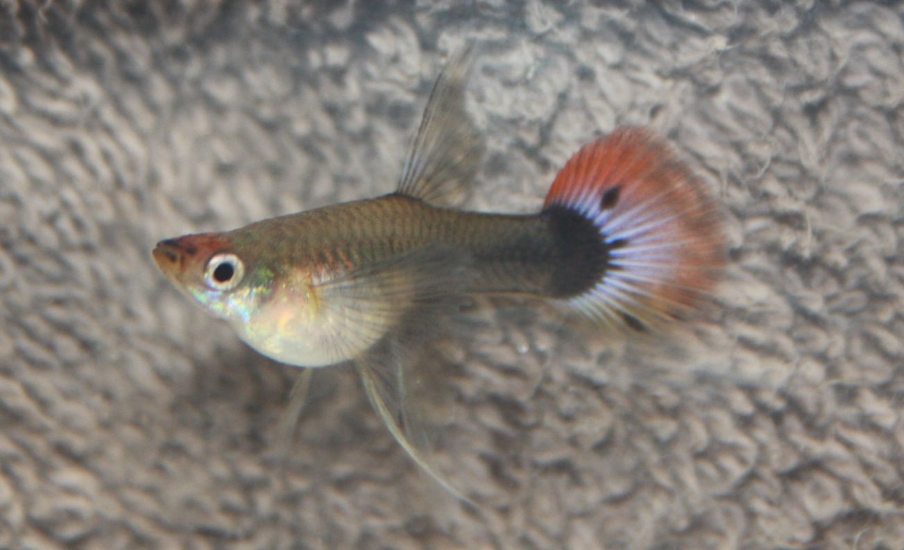 Overhere a female ribbon tuxedo red koi guppy...