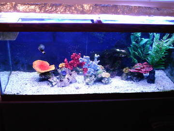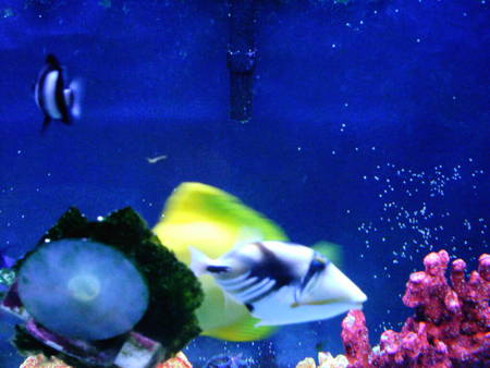 For some reason I can't get a good pic of the yellow tang but I have an older pic from when she was n the 55g.