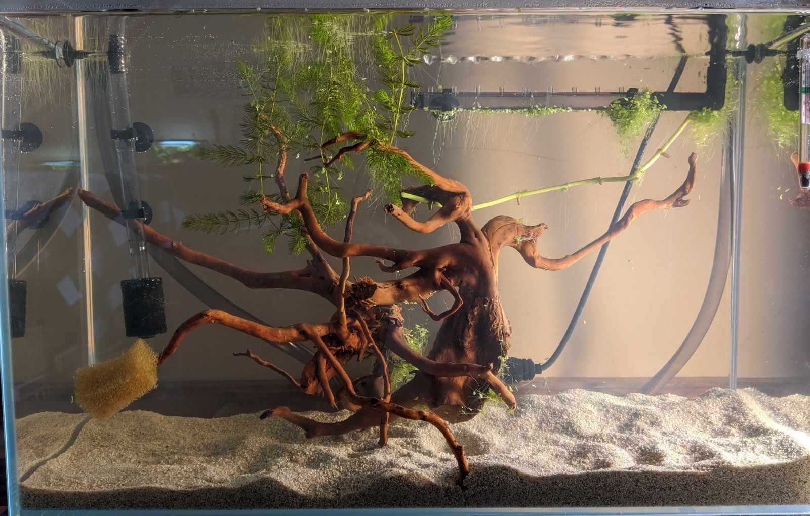 Haha, yes, just sand. I love the warm color and the way the spider wood looks on it.Had to go and look up that sand, initially I saw "ADA" and thought, 'nutrient based substrate for plants', and then you said you weren't planting any in the substrate it didn't make sense haha but, that ADA sand is just sand (well, a nice looking sand).