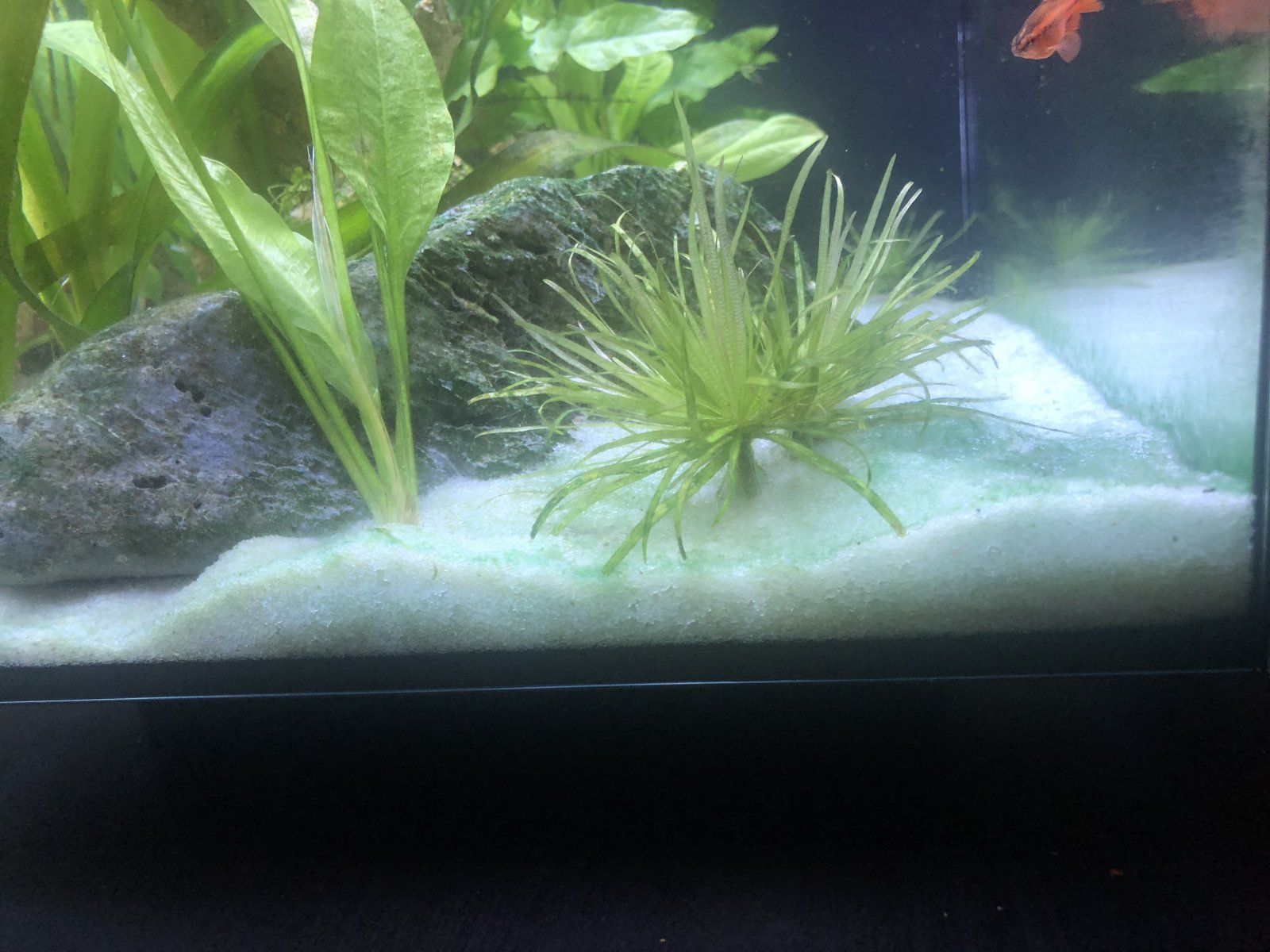 I’ve noticed over the last few weeks the sand in one corner of my tank has started to turn a very bright blue/green colour. It is only in this one specific corner and nowhere else in the tank so I’m wandering what could have caused it. Maybe excessive root tabs?