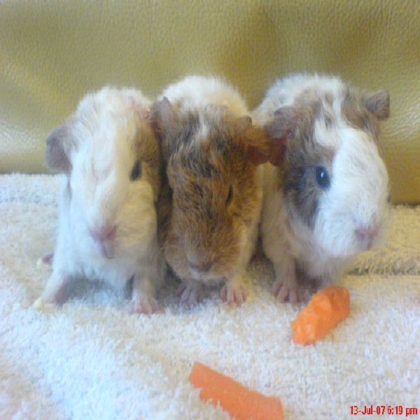 Cute!! Here is a pic of some 12 hours old baby guinea pigs. They are Rex Roans. All 2 became show pigs and won them selves many awards!