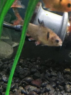 So, I've posted something before saying about how my Serpae tetra are giant fun-nippers. One of them is looking so beat up to the point of dying. He swims sort of at a slant, he's lost a lot of color, his fins are all ragged (all of the fishes' fins are), he rarely eats, he has black specks on his body, and his lips are all puffed up.