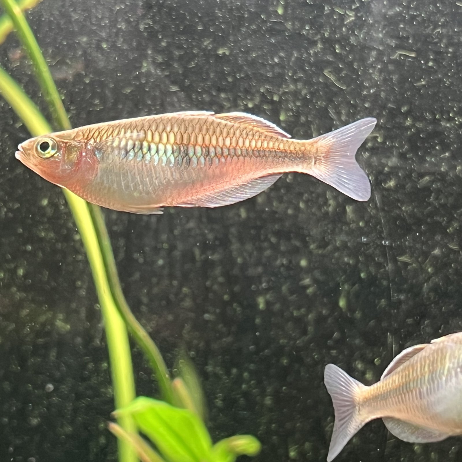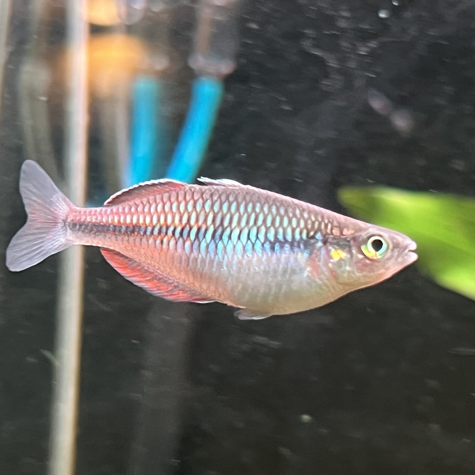 Hi fish experts. Would like some help sexing these fish. I have an existing batch of a few 2.5 inch males with beautiful blue orange color and a new batch of 13 smaller fish around 1.5-2 inches. Almost all of them have a dark stripe with iridescent green/silver with minimal orange. Only one has recently developed some orange at the tail. Are they still too young to sex? Or have I been scammed into purchasing all the leftover females / some other hybrid species?