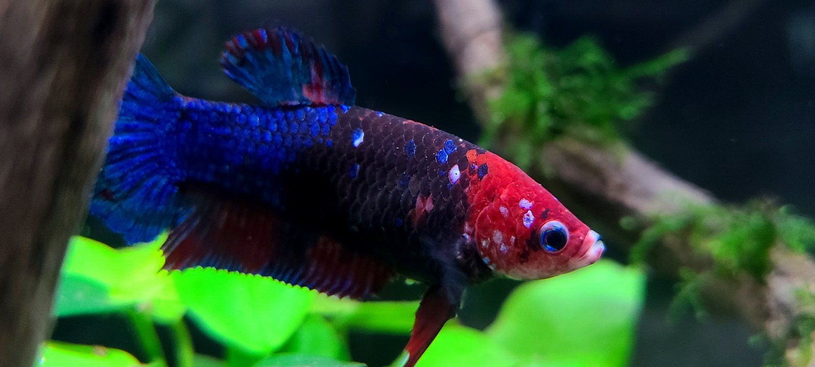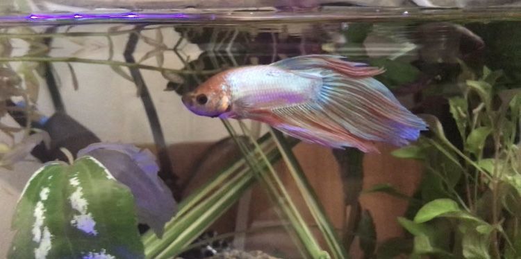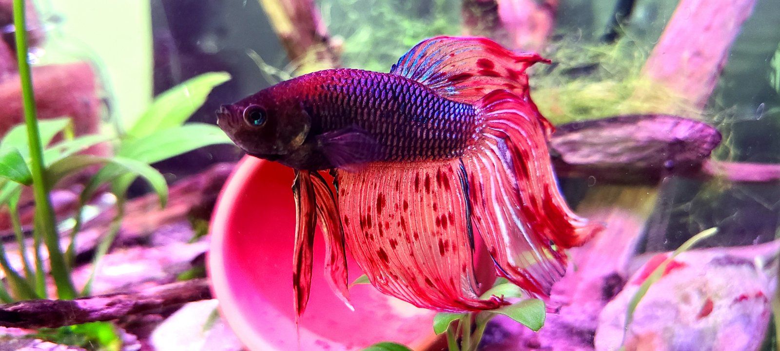 This is Neptune (Neppy) the day I got him home last year. He changes in colour throughout the day from red-purple-pink-blue. We only really have vail tails and crowns available where I live.