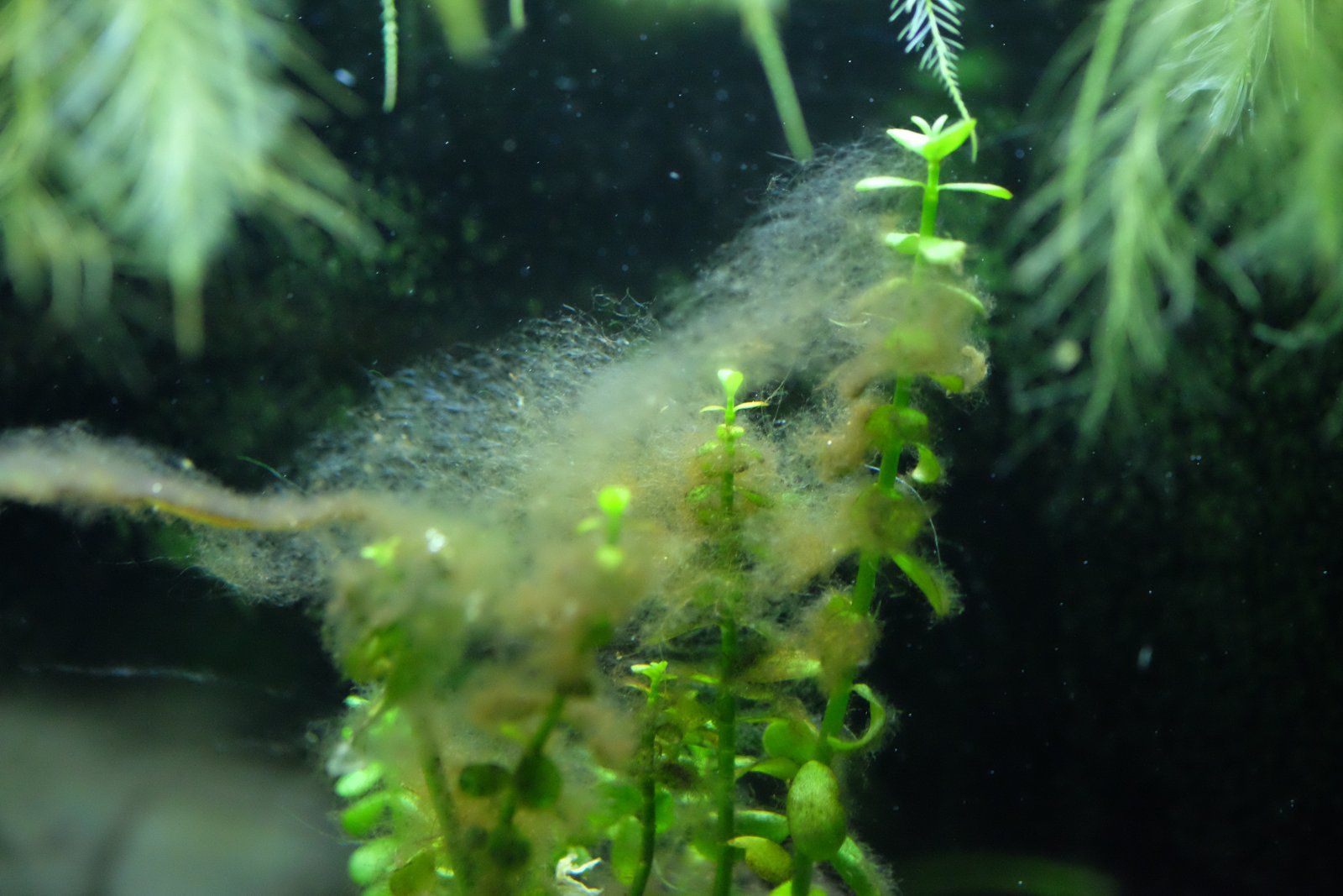 And now this hideous algae I can't even identify has appeared. Tempted to throw that moneywort out, it's a magnet for algae, but never even seen this type before
