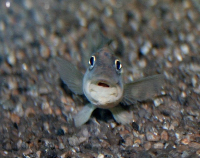 Those are fascinating fish - but I have only kept the dwarf ones. That guy does look happy. But my little Steatocranus gibbiceps from years ago was happier looking. He ate snails.