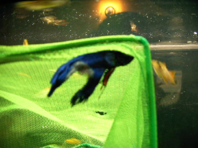 i do water changes once amonth 1/3 of the water and no he doesn't seem very fluffy but at the grey bit towards the bottom were his fins are inbetween he has a sort of skeletal feture