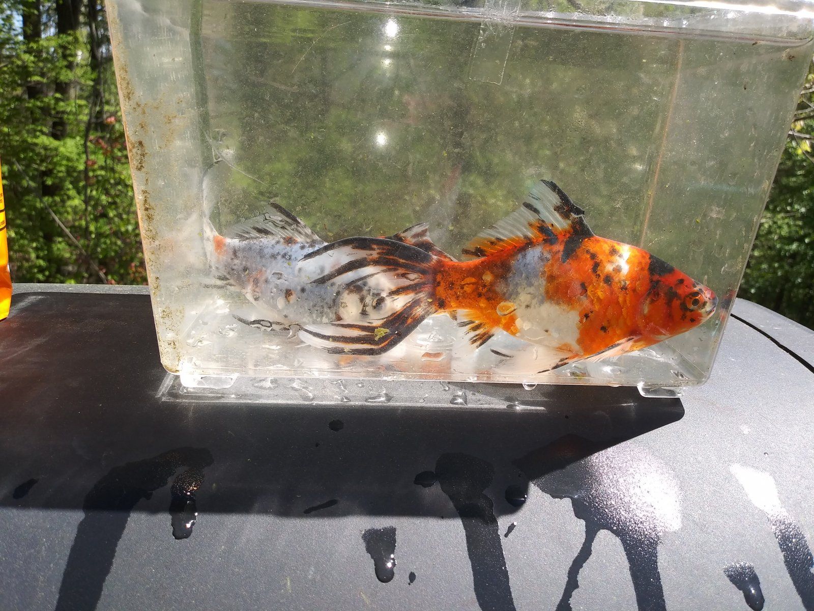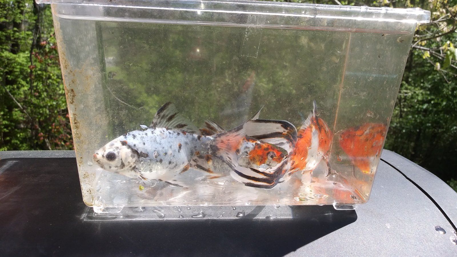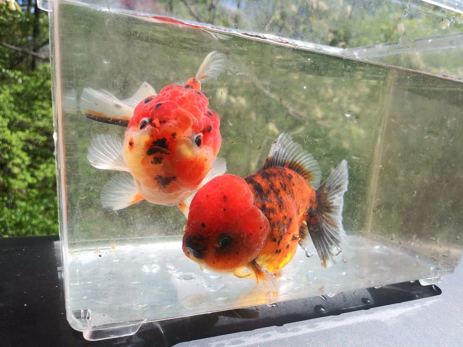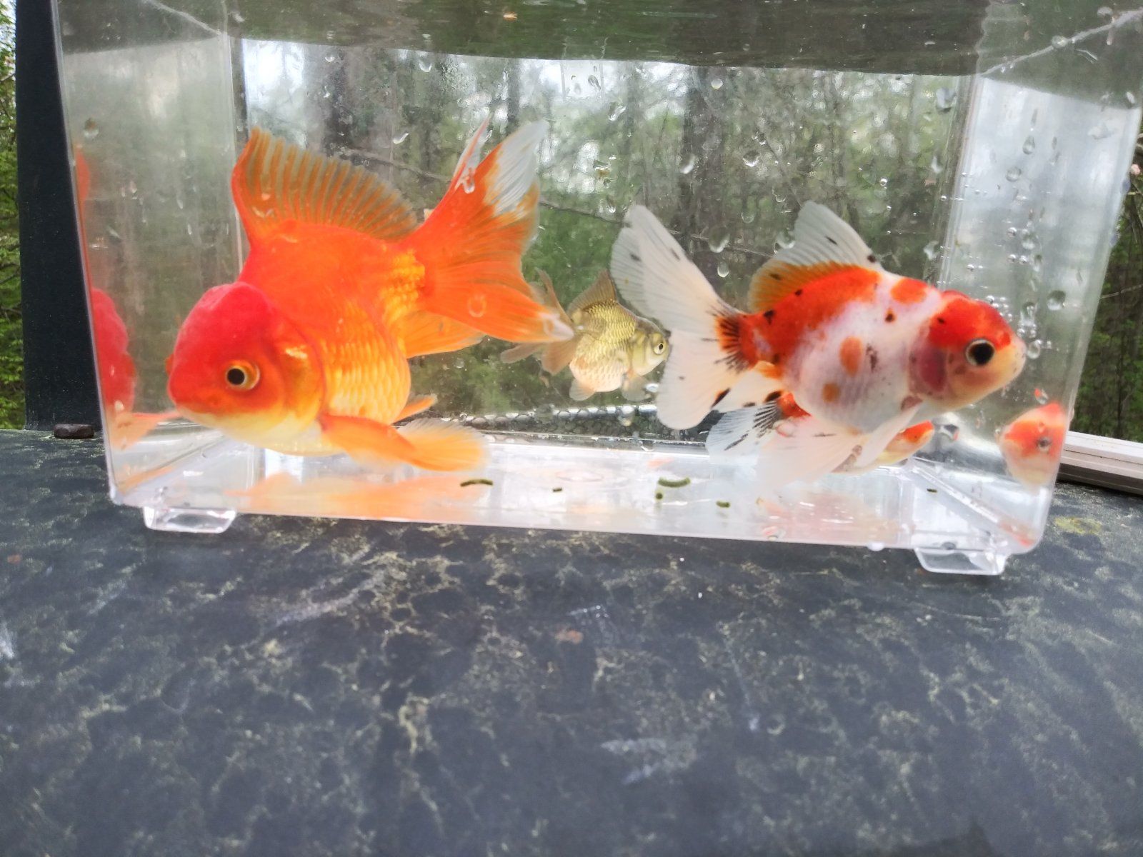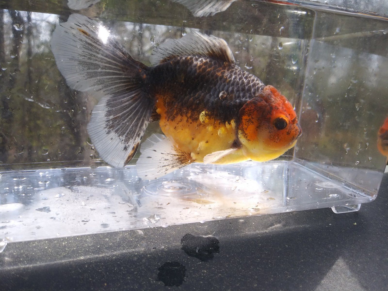My goldfish are all outside but I pull them into a display for pics from time to time. My tropicals are too hard to get pics of.