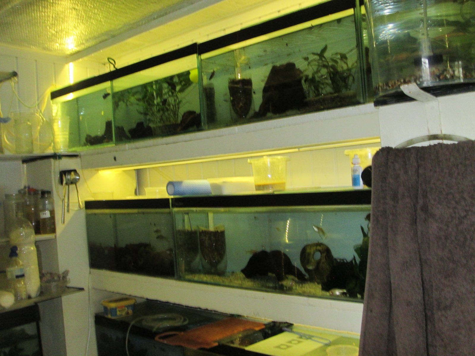 my latest fishroom /shed I built 3-years ago, fed up with my old shop-bought shed I lost count of cost and time wasted doing repairs over the years with rotten floor boards and timber framing forever collapsing however it did last about 17 years , So I specially designed my new fish room to last ,