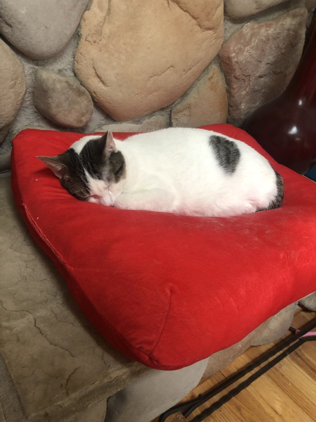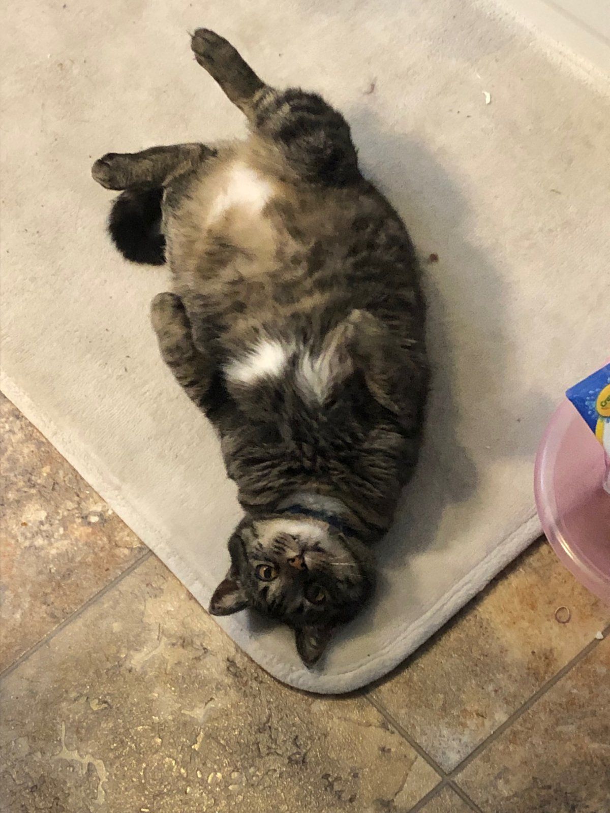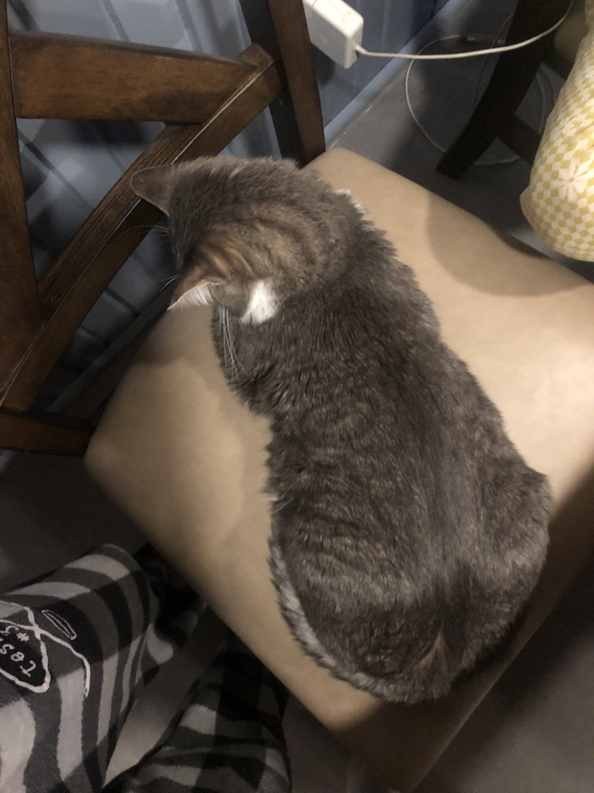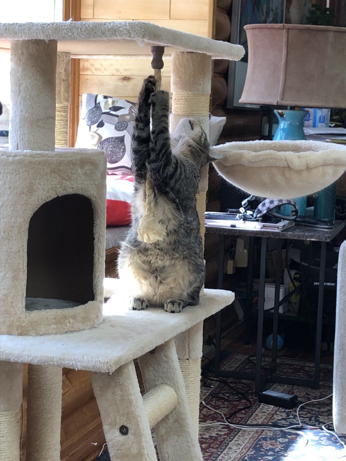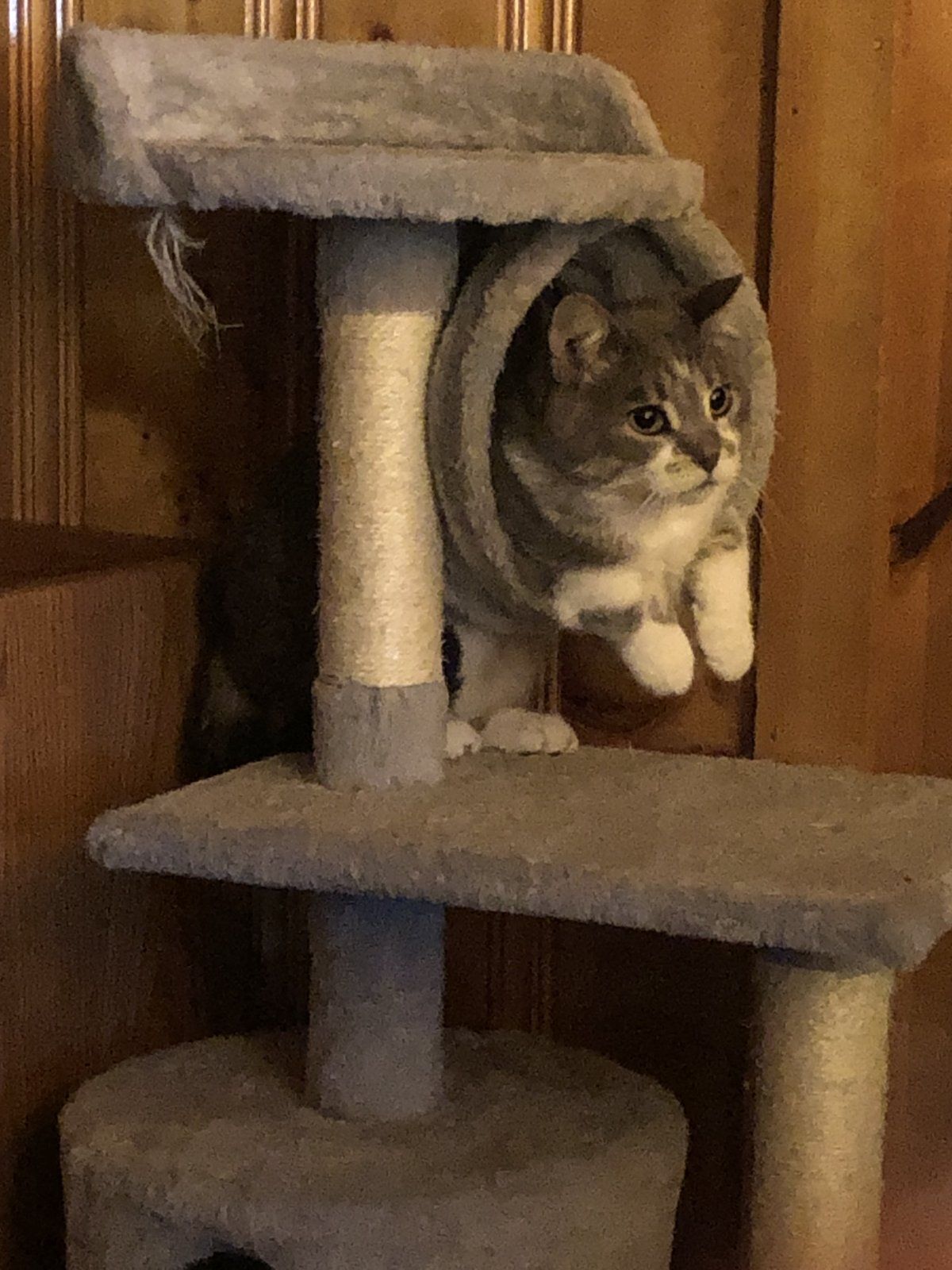 he loves to sit in his cat tree like this because he can no longer fit all the way in it. hahah