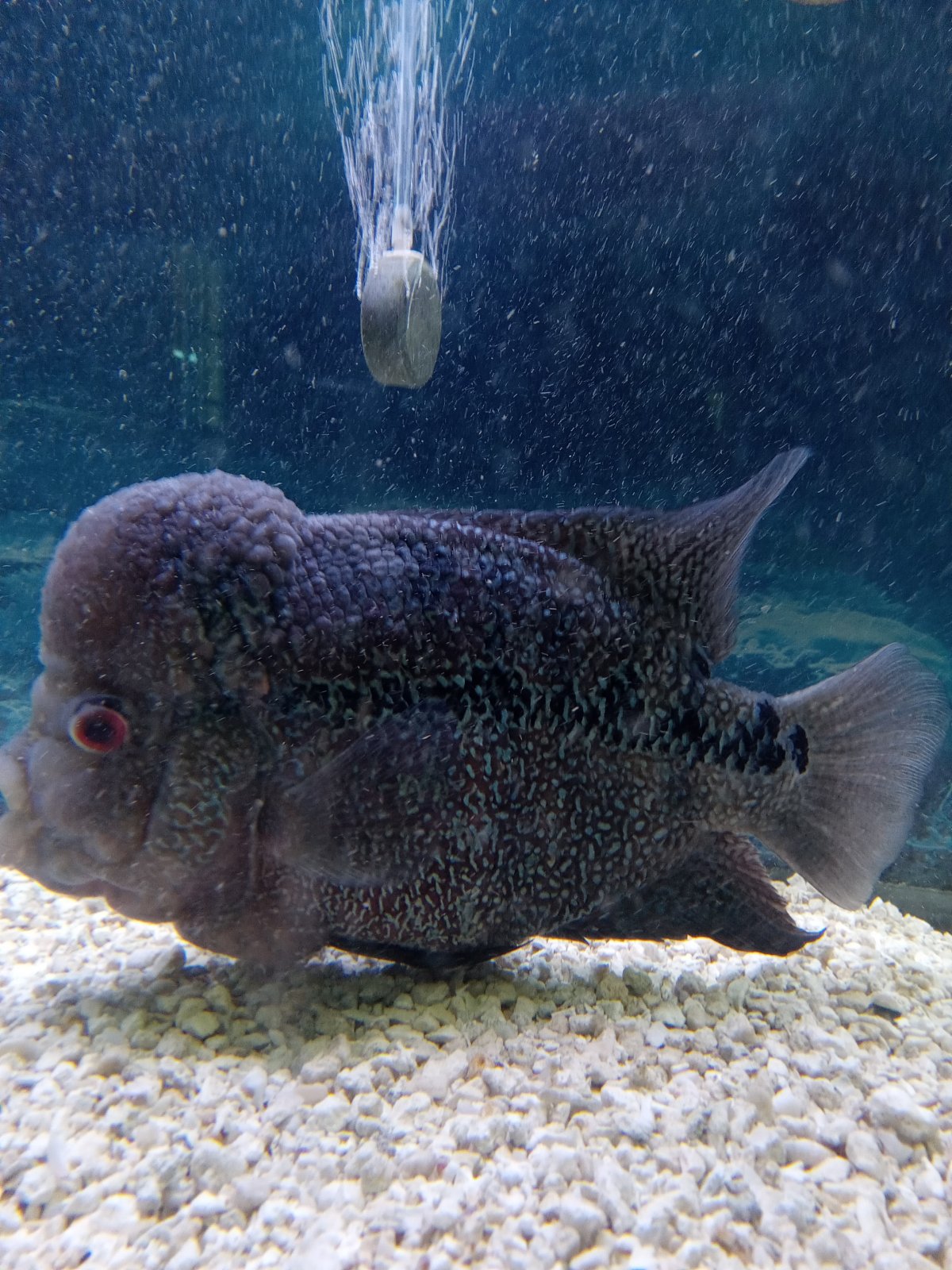 I'd consider getting a python water change system to make it easier. With buckets, you and your flowerhorn won't be friends for long, although you'll have great upper body strength. Big fish are work.