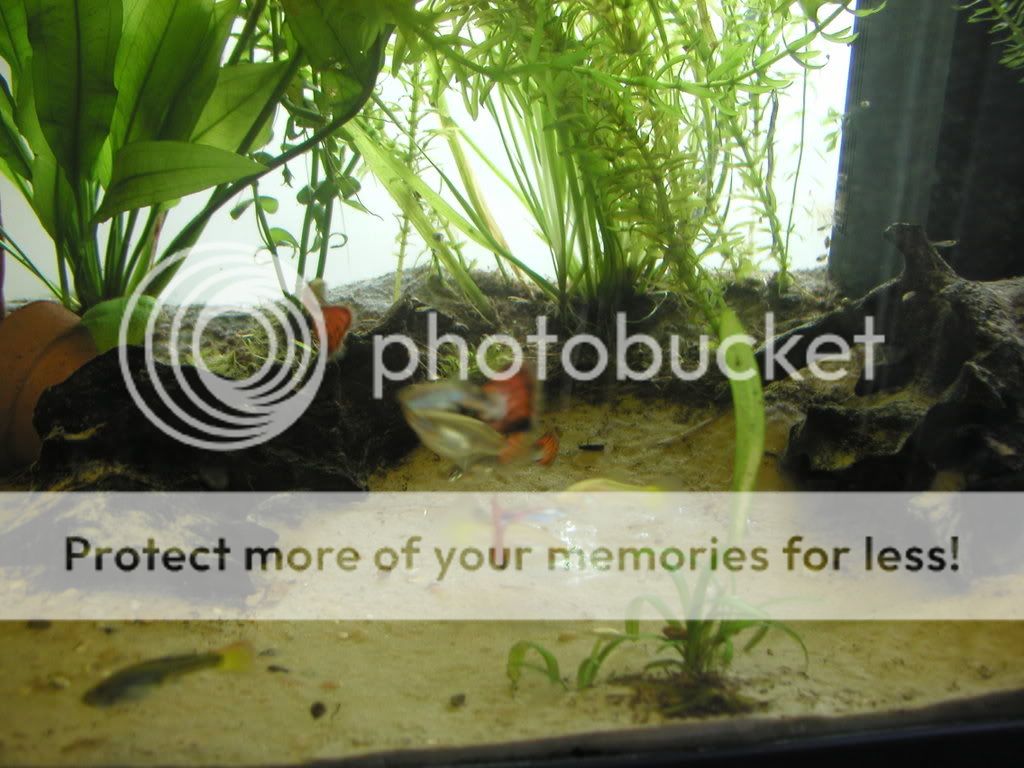 Unfortunately, this was the best picture I could get of the male, the lighting in the tank is poor but I got the tank for £20 so I can't complain. This HRP I think has better colours than the male in my pair, he is also bigger. His fins are a darker red, but he lacks the definative striping.