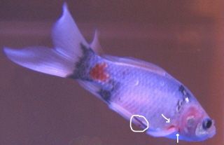 Please help. I have been told to and have used "General Cure", contains 250 mg Metronidazole and 75 mg Praziquantel per packet. I used 3 for my 30g tank (per instructions) treatment last night for Shubunkin (5") with very red patch at base of gill. First noticed very slight light brown color at base of dorsal fin, fin clamping and the fish gasping(few days ago). Then I noticed the redness on gills and now at base of bottom fins, I also notice a small white node or something the size of large salt grain on the redness in both locations. The red on the bottom looks round and protrudes from the fish. The fish tries to eat but I can tell he/she is very uncomfortable, the mouth motion is also not normal, seems like mouth gets stuck closed sometimes. The fish does dart around at times and mostly sits still near bottom of the tank.