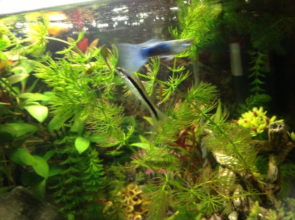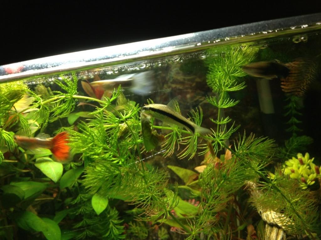 So I'm gonna post some pictures to show what my fish looks like, I'm pretty sure it's a flying fox (that's what it was sold to me as) but I just wanna double check. Although, it may be harder to tell because he's such a young fish (you can see how big he is in the pics compared to my guppies). There isn't really anything I can comment on about this fish's behaviour, apart from he gets along with his tank mates, eats normal fish food as well as algae and likes to have something to sleep on, like a rock or a leaf. And I don't actually know if he's male or female.