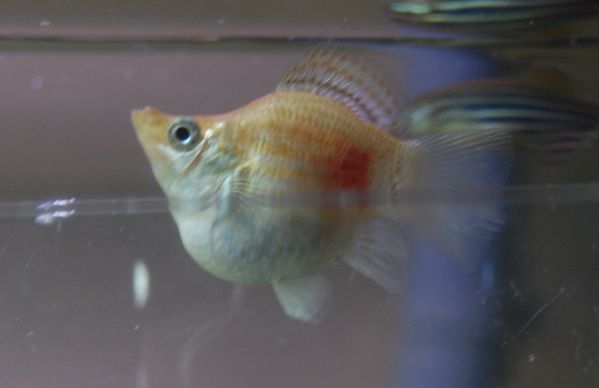 My white balloon molly that seems pregnant has in the past 24 hours developed red (blood?) marks on both sides in front of her tail. She was hiding under a rock this morning. I put her in a breeder tank just in case. Does anyone know what could be wrong? Photo included below. Thanks.