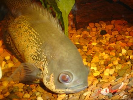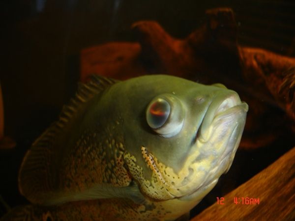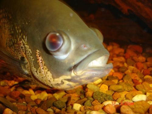He is in a 200 litre tank with 2 bristlenoses and a firemouth. I do weekly water changes of 20%.