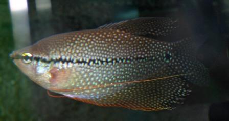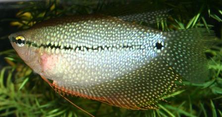 The gourami in question does not act sick. He eats very well and his behavior is normal.