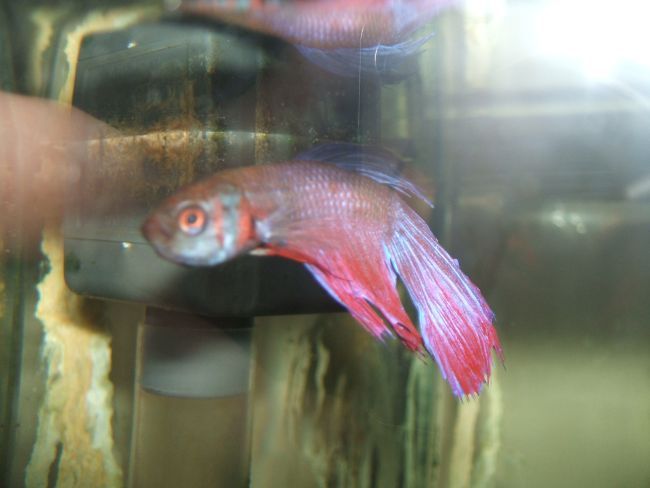 his name is de niro, a combtail i think, and he came to me with stubs for fins after being shoved in a tank with paradise gouramis. they grew back after 9 weeks and are still fairly full and flowing, but his body weight has just dropped. he lives alone in a 5 us gallon hex (sand substrate, bogwood and live plants), the hex is fully mature (earthy smell and all).