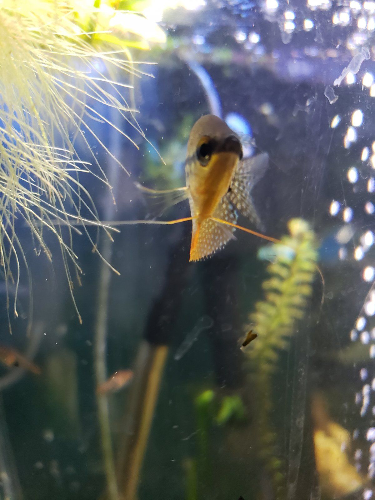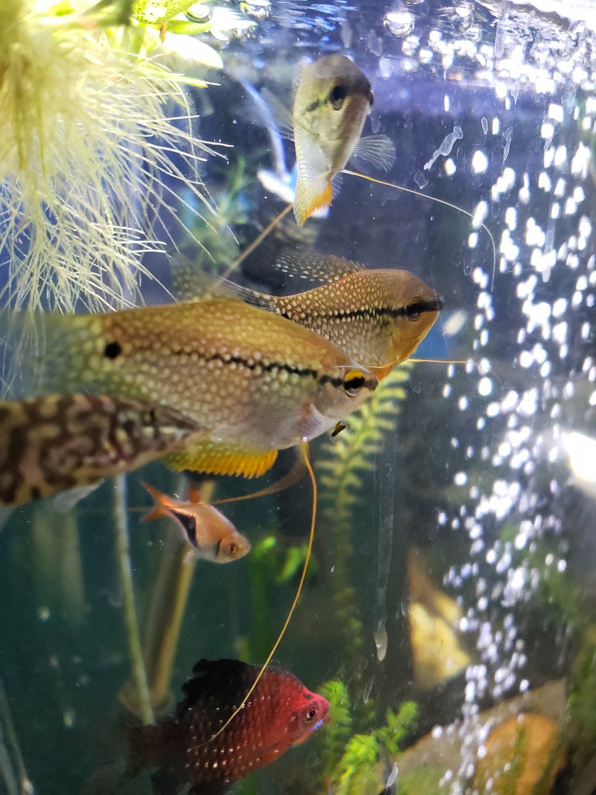 One of the males is starting to look thinner than the other gourami, and I am thinking I should remove him. I have a couple housing options for him. Unless otherwise mentioned my hardness is 110ppm and 7.4 ph.