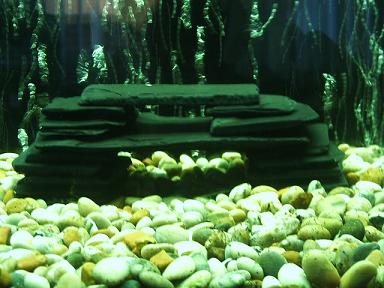 so kind of like _---_ so there is a small opening, then dig out some of the subtrate so that when the cat gets into the cave it is big inside and you can see you fish when it goes into the cave
