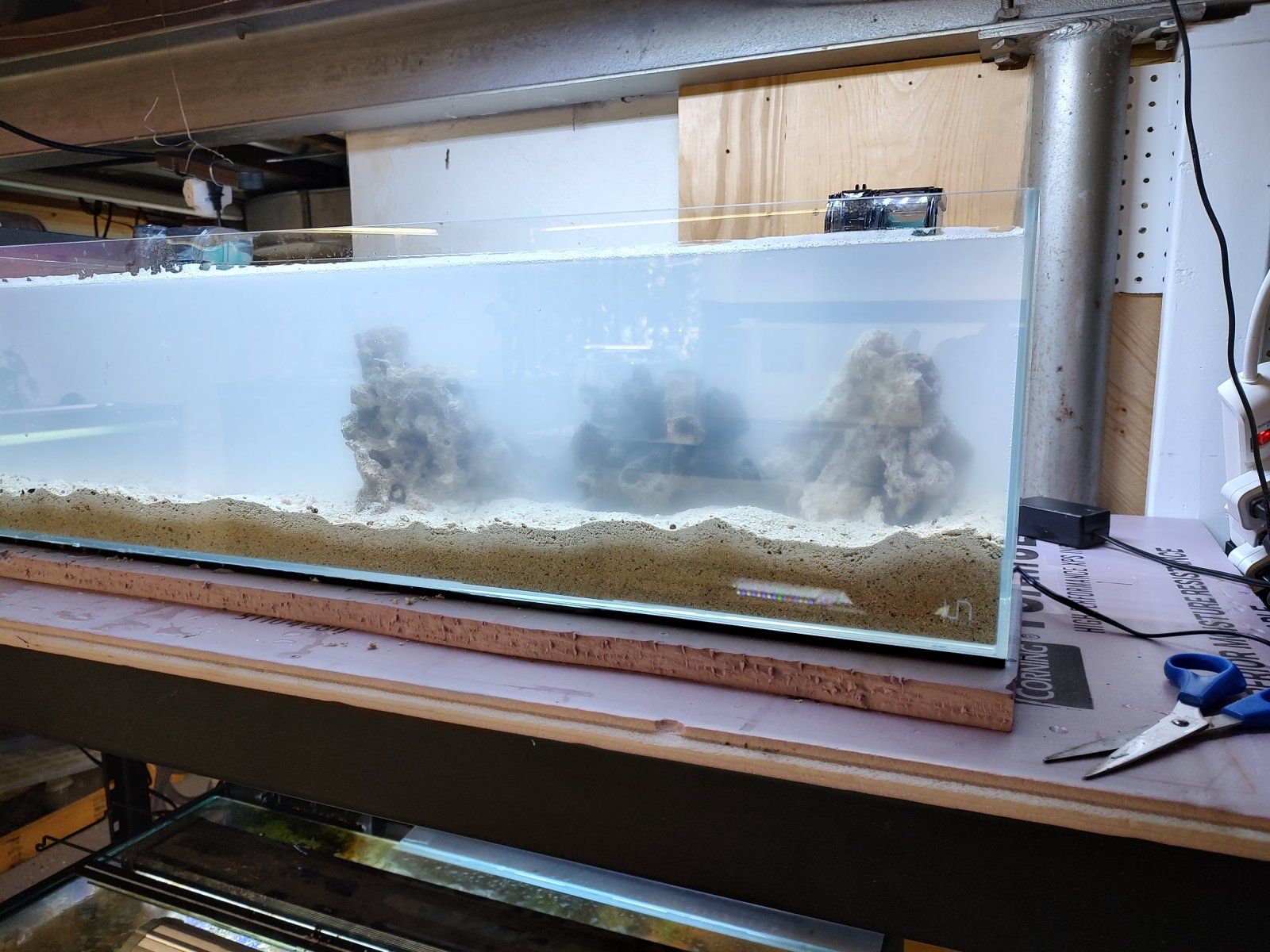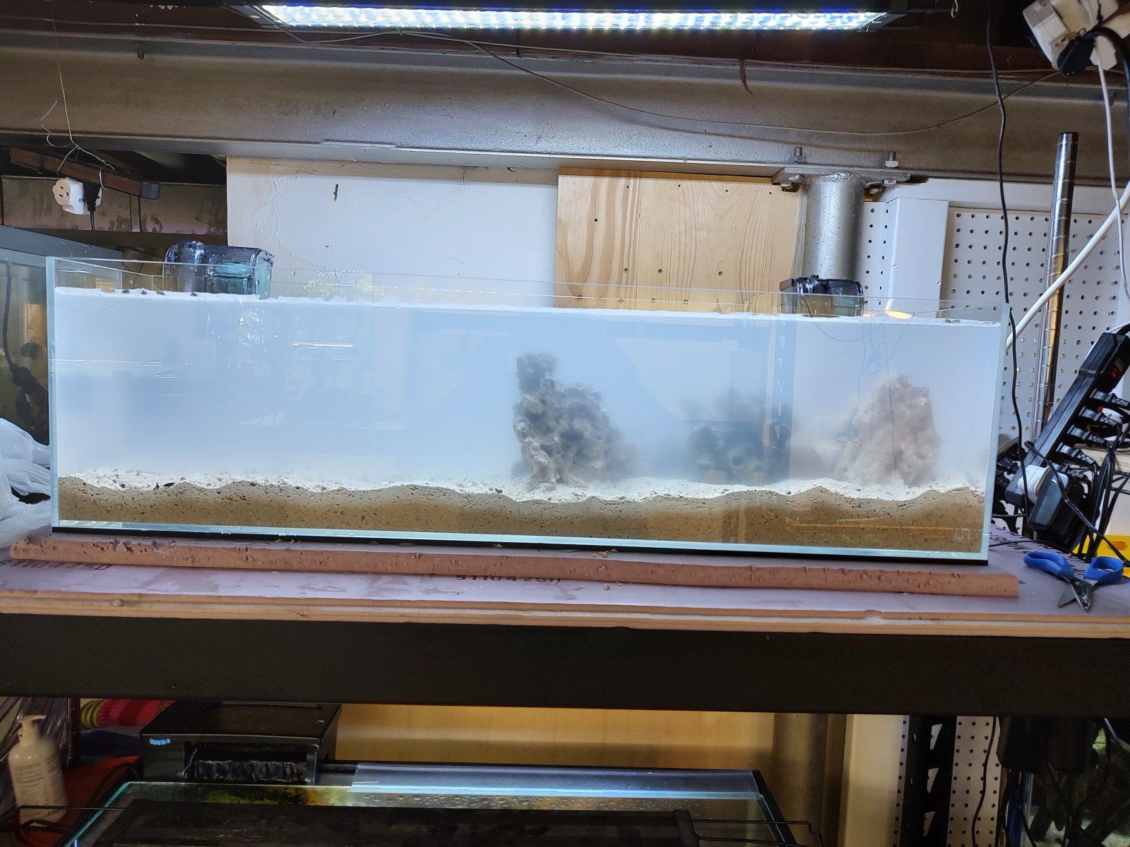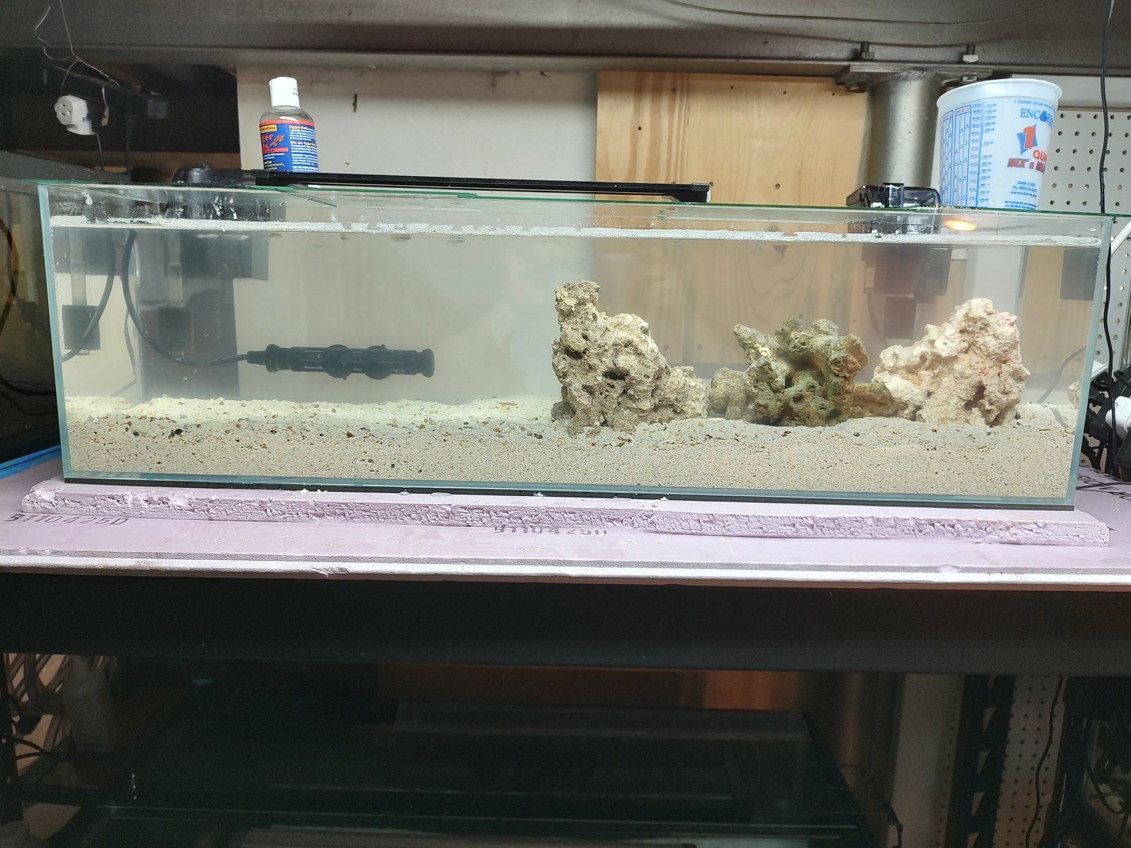 Love this substrate, it's a combo of Carib-Sea Fiji pink live sand and topped with Marine something ocean sand, its full of shells and is super interesting. I got the Fuji at Petco and the other substrate as well as the love wet and dry rock at Beyond the Reef in Schaumburg. Their store is chock full of supplies for both, cyanodorsalis fresh and saltwater and worth the drive.