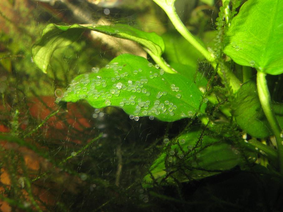 Is it apple snails you have? I'm 99% certain they're not rasbora eggs,