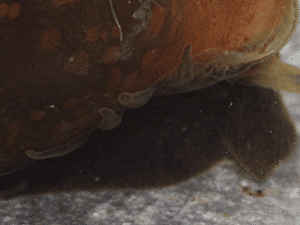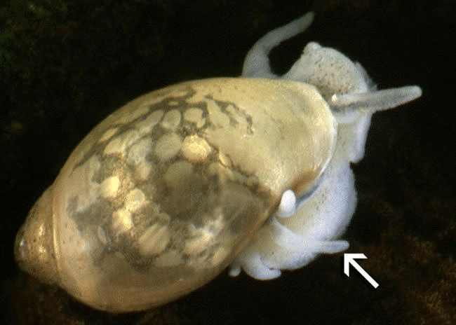 OmgThere are a fair amount of pictures online of it. It is the mantle lobe, which extends over the exterior of the shell. The mantle is the muscle that holds the body of the snail to the shell.