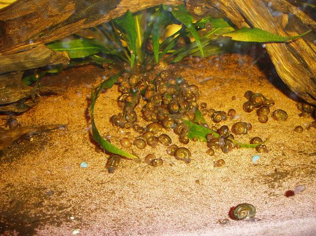 LOL! I have a total of 2 snails! One ramshorn that I see about once a week making his rounds, eating the algae and poopy. And one like yours but smaler and I think one of my pinks ate him lol.