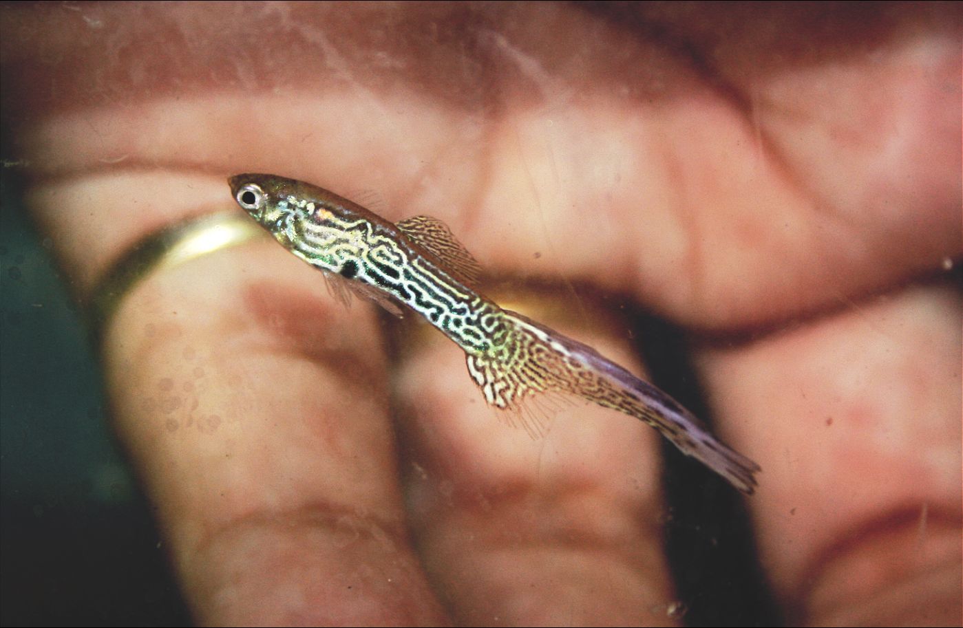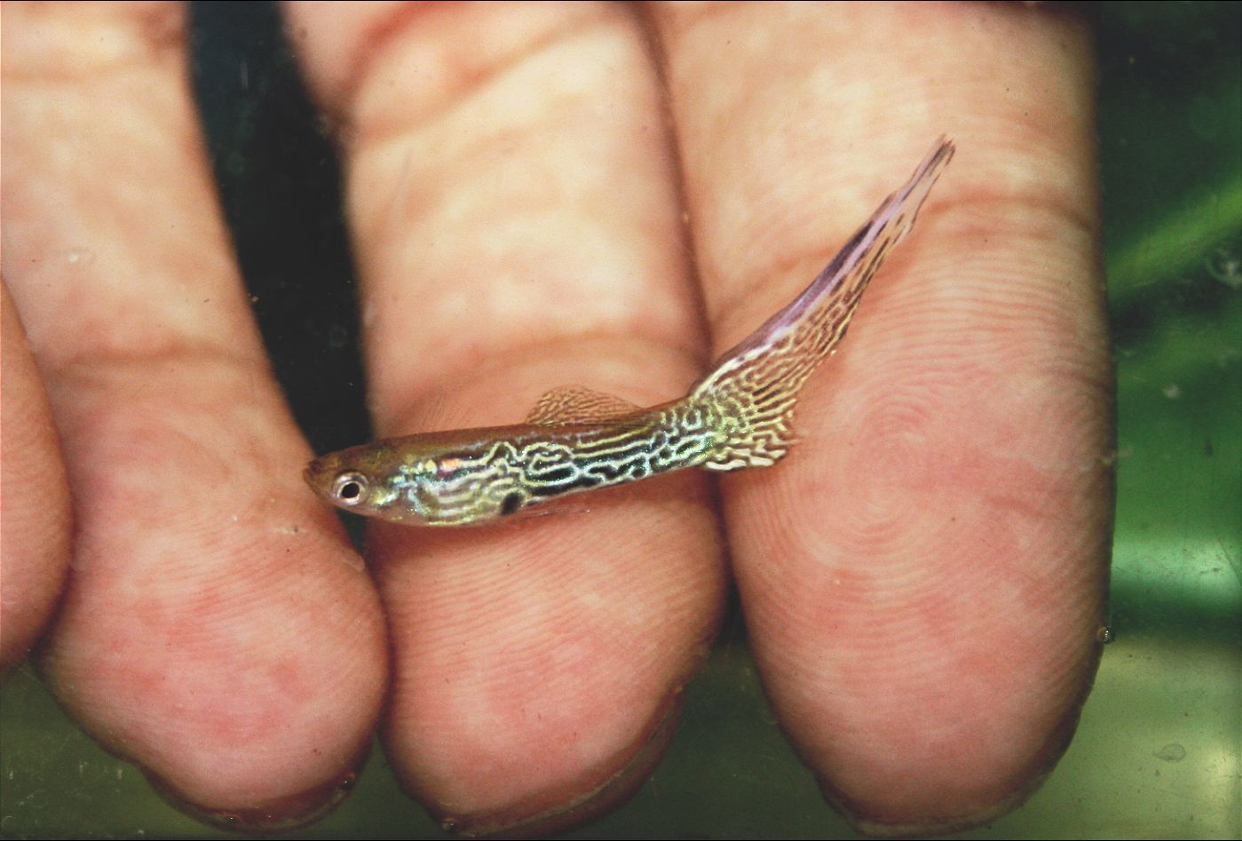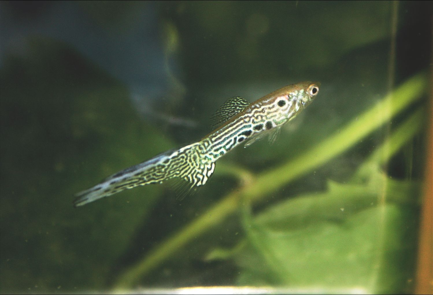 I've been keeping snakeskin topsword guppies for a long time, both grey and blond based. But I've recently noticed that a specific male has developed in a cobra endler population that shows phenotypically a snakeskin topsword guppy. Well, the cobra endler is already a hybrid strain made of a cobra guppy x black bar endler. So, it's not weird that a snakeskin or cobra guppy shows up again. Same that a normal black bar endler can still show up from this particular strain.