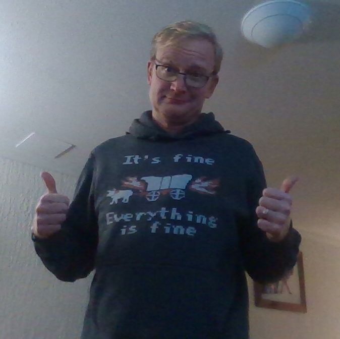 This is me, in all my glory, sporting my official end-of-2020 shirt.