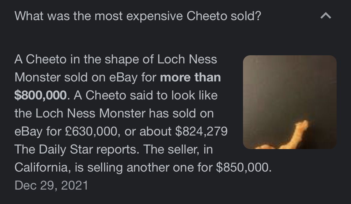 Ummm, goldfish crackers? 150$?I’m not going to actually post the entire listings here because it took long enough to post on eBay. Here’s my profile if any of you want to check out what I have for sale: